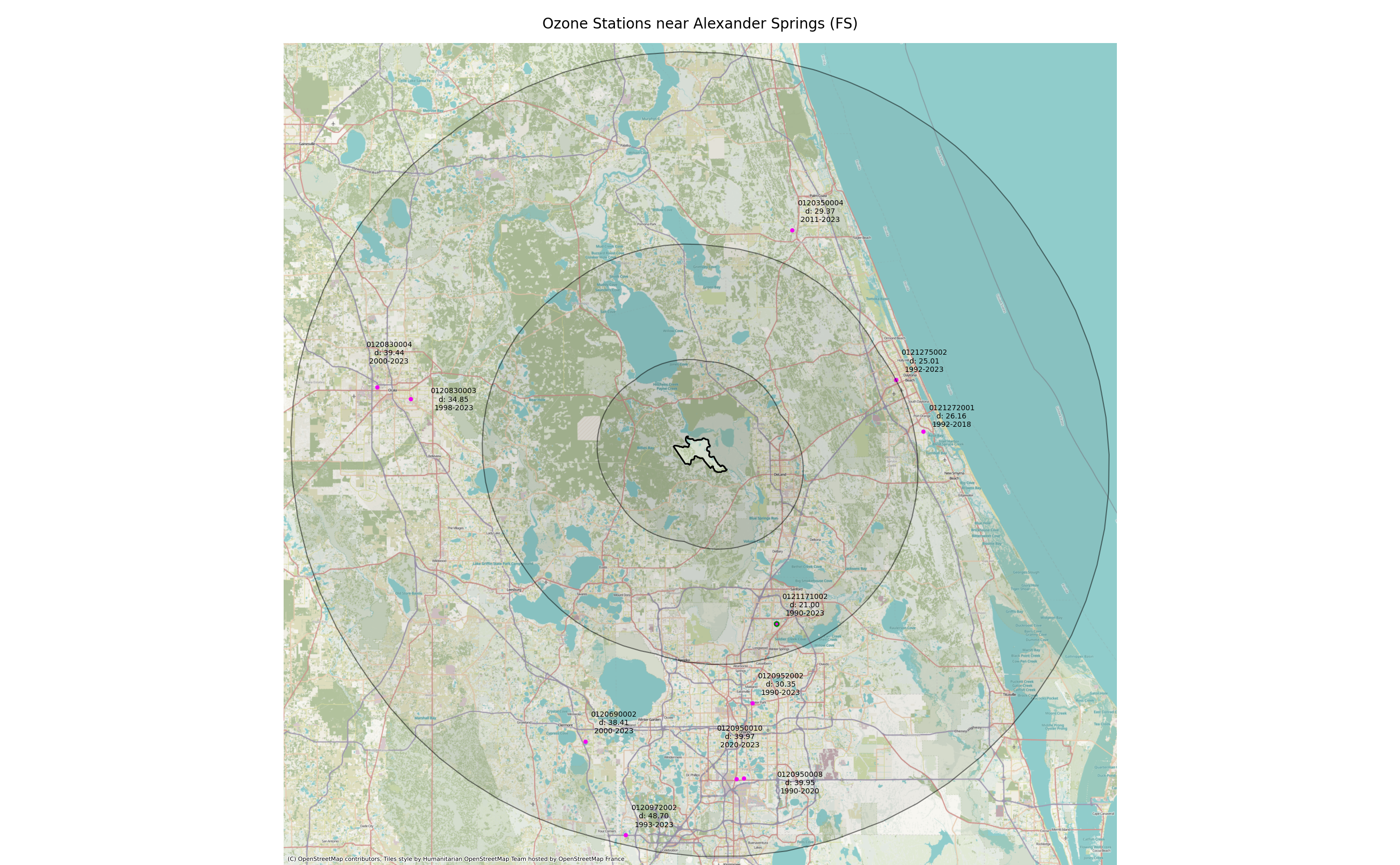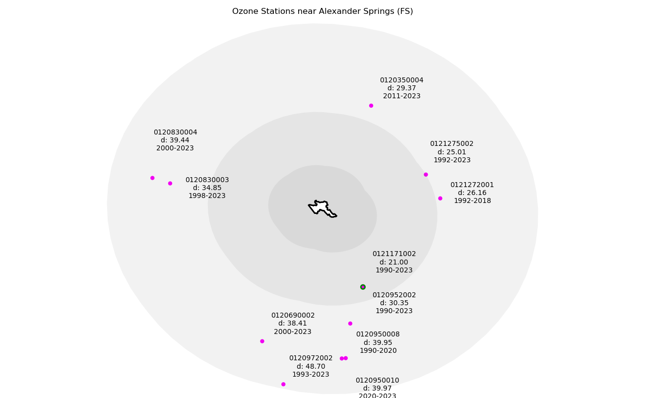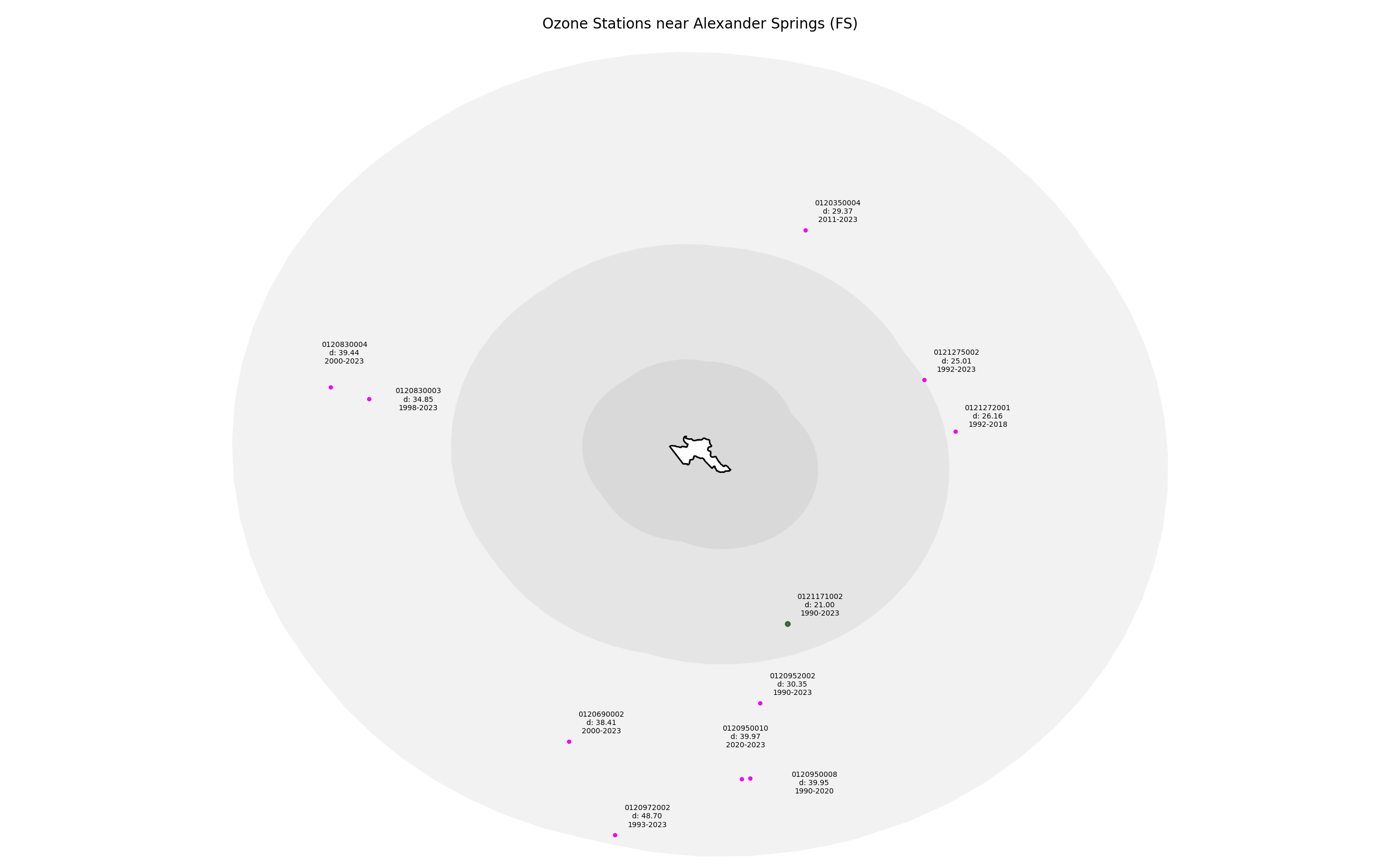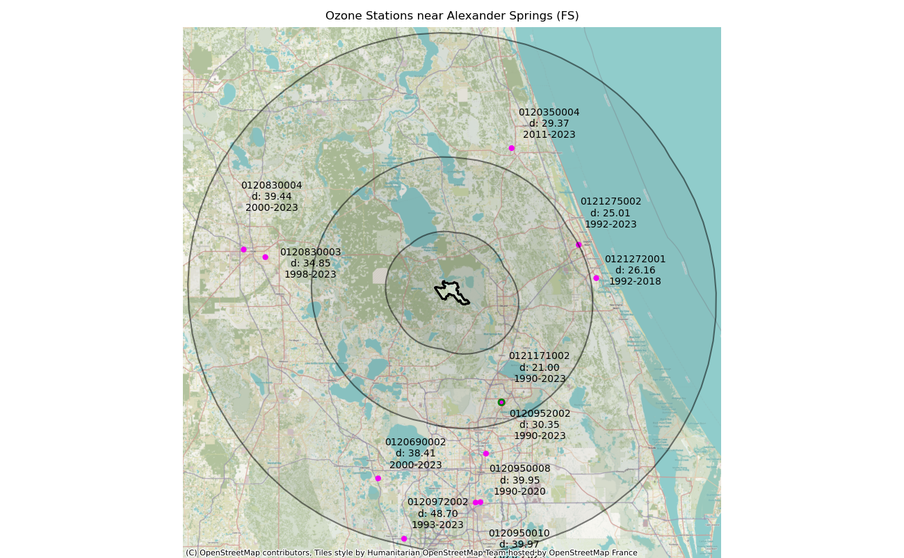 Monitoring data from sites located within 25 miles of a wilderness boundary are generally considered representative. Only ozone data from 1990 forward are considered valid for this measure, so the earliest 3-year moving average used for any wilderness should be 1992. Period of record otherwise begins at the year of wilderness designation. A wilderness designated in 2000, for example, would use data from 2000, and the first 3-year average would be from 2002. Not all ozone monitoring sites have legacy data dating from the year of designation, in which case the baseline trend uses the ozone data when monitoring began.
