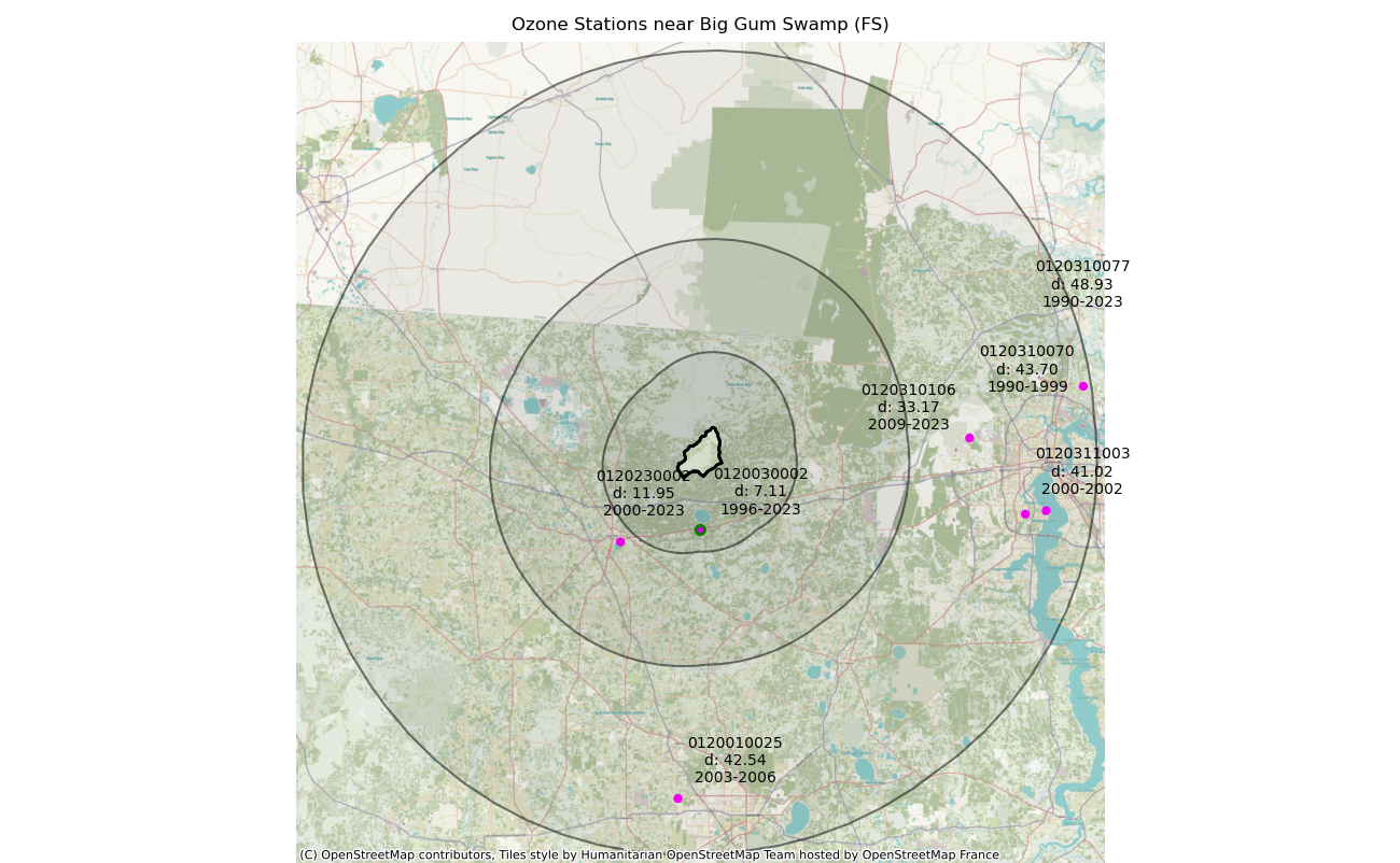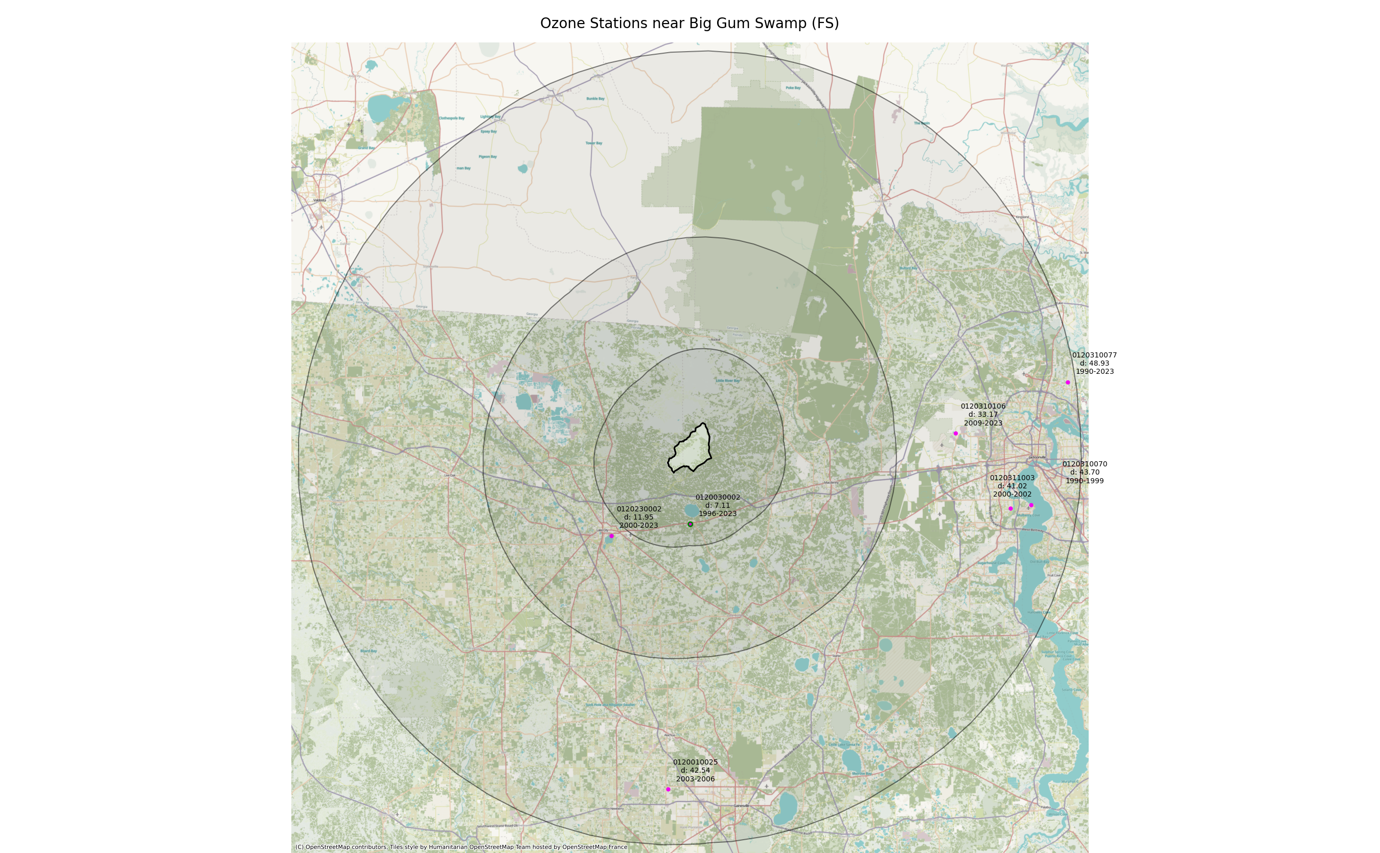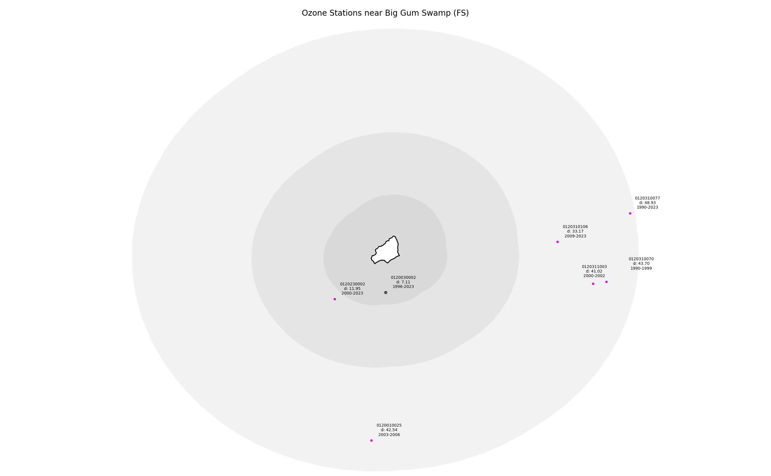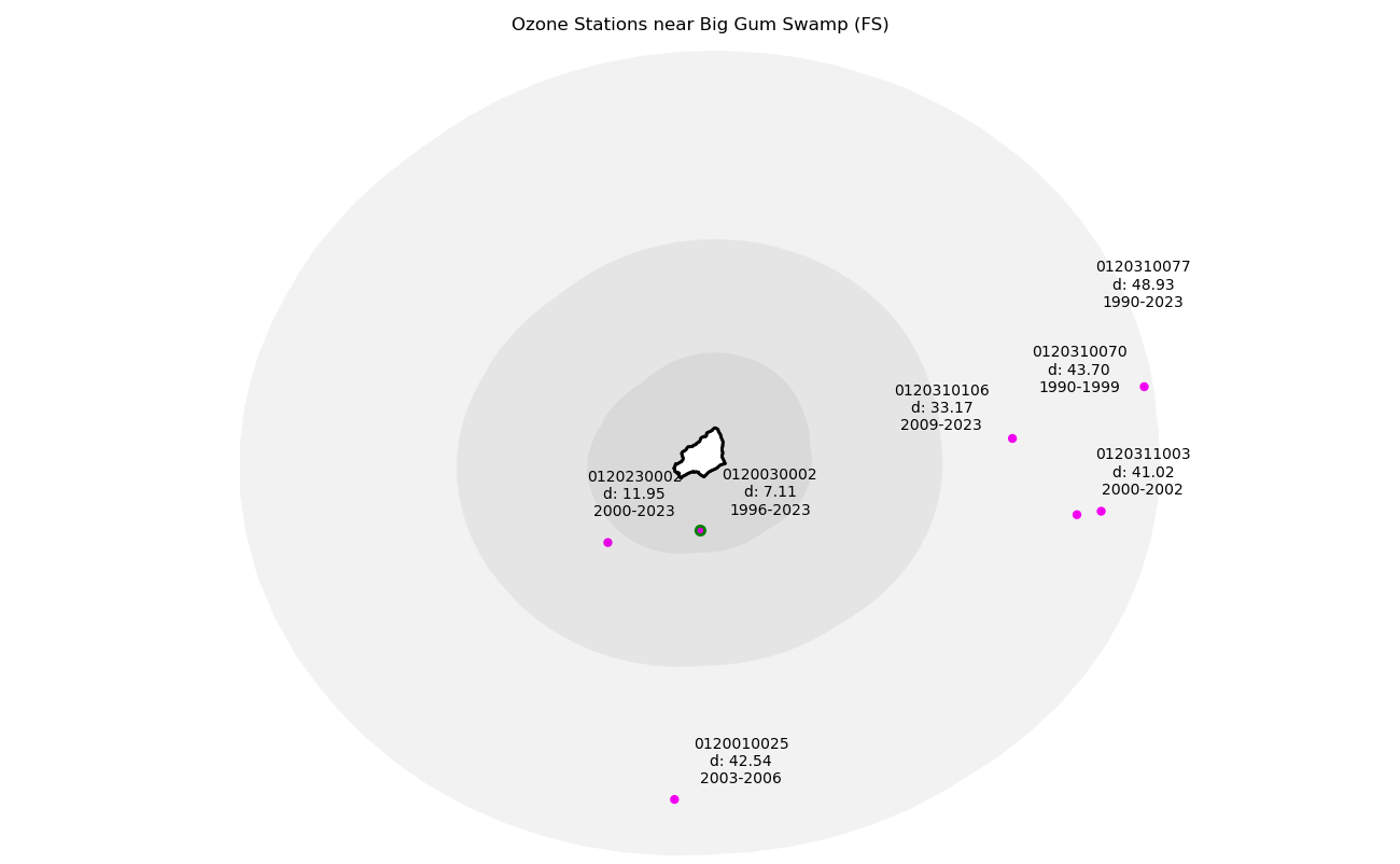 Monitoring data from sites located within 25 miles of a wilderness boundary are generally considered representative. Only ozone data from 1990 forward are considered valid for this measure, so the earliest 3-year moving average used for any wilderness should be 1992. Period of record otherwise begins at the year of wilderness designation. A wilderness designated in 2000, for example, would use data from 2000, and the first 3-year average would be from 2002. Not all ozone monitoring sites have legacy data dating from the year of designation, in which case the baseline trend uses the ozone data when monitoring began.