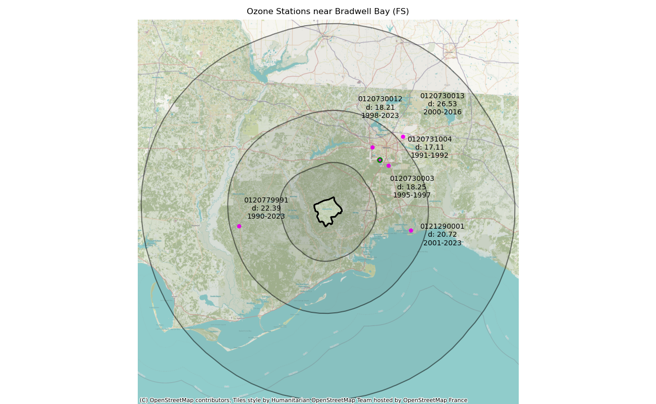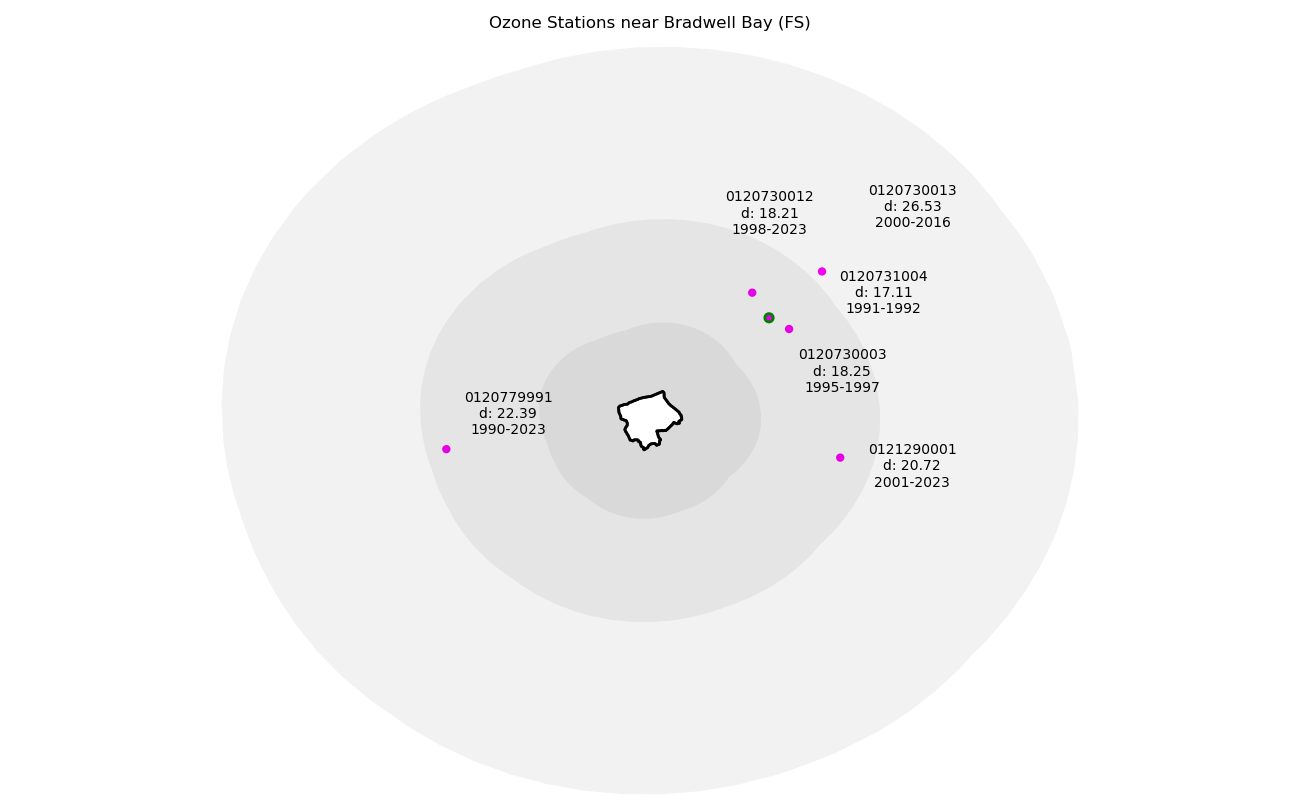 Monitoring data from sites located within 25 miles of a wilderness boundary are generally considered representative. Only ozone data from 1990 forward are considered valid for this measure, so the earliest 3-year moving average used for any wilderness should be 1992. Period of record otherwise begins at the year of wilderness designation. A wilderness designated in 2000, for example, would use data from 2000, and the first 3-year average would be from 2002. Not all ozone monitoring sites have legacy data dating from the year of designation, in which case the baseline trend uses the ozone data when monitoring began.
