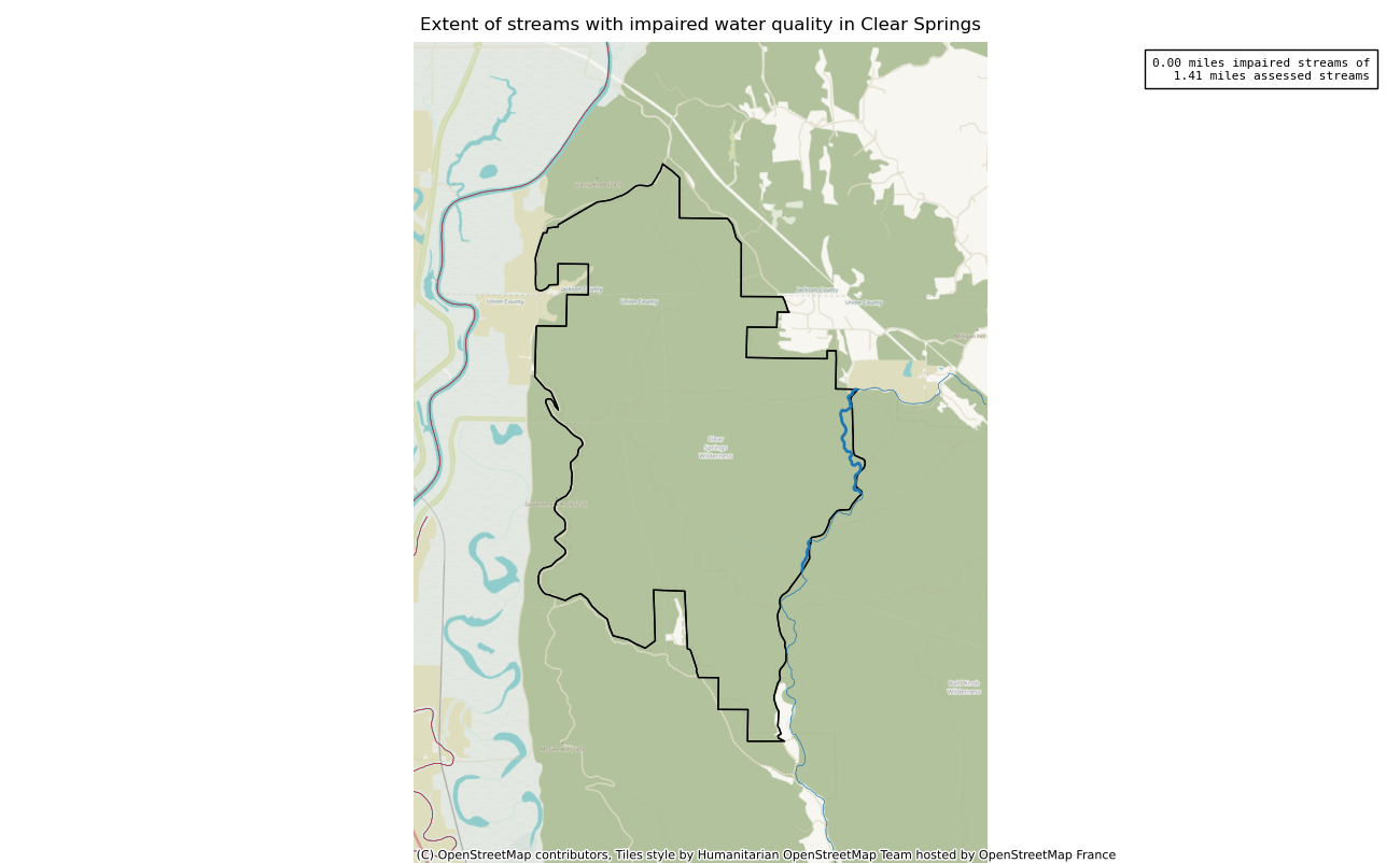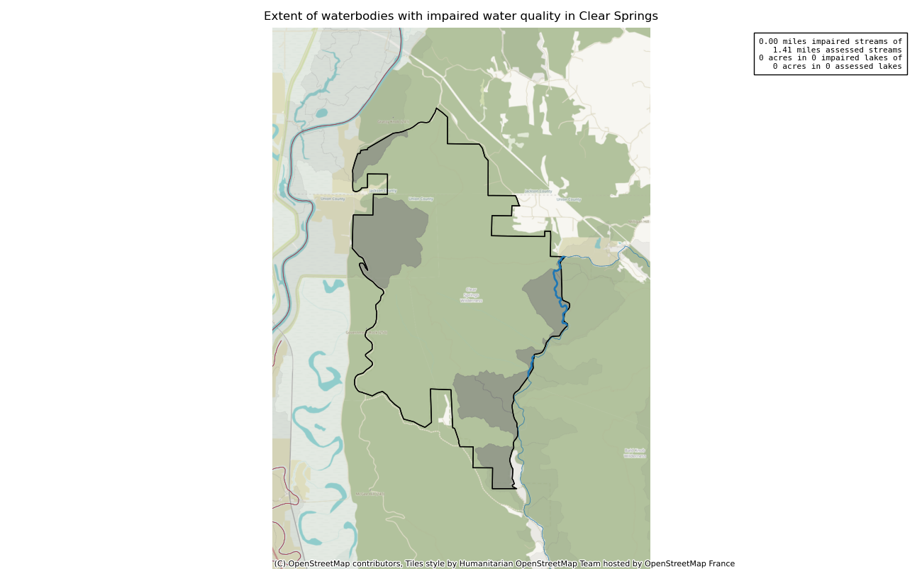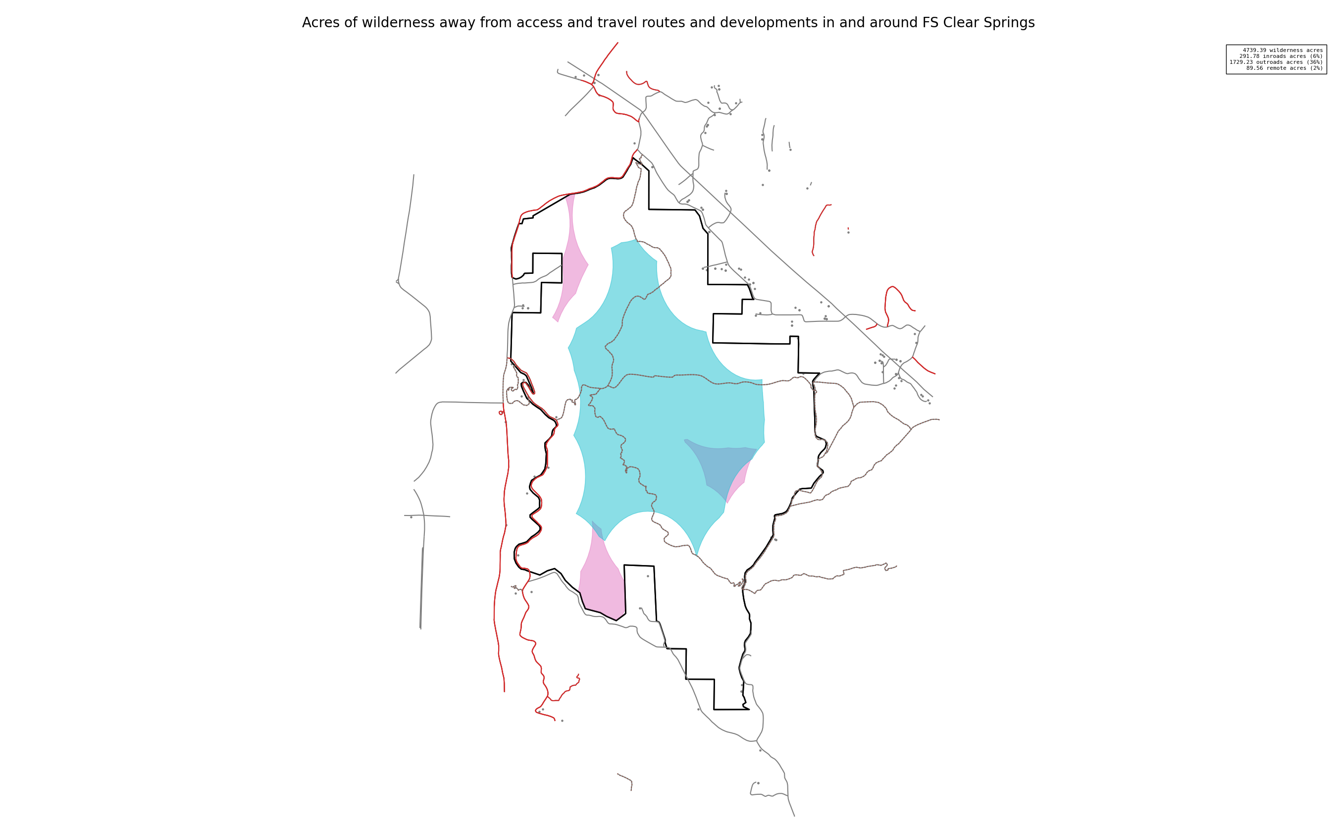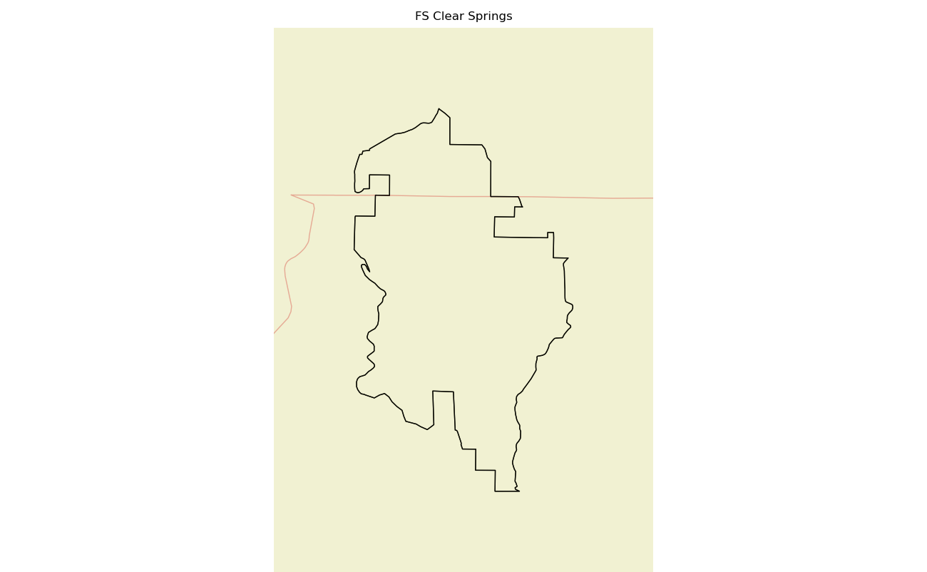 The 4739 acre Clear Springs was designated as a National Wilderness on or around 1990-01-01, and Wilderness Character Monitoring baseline work was done in 2025. The maps in this section are made with USFS data, with terrain maps from the internet.