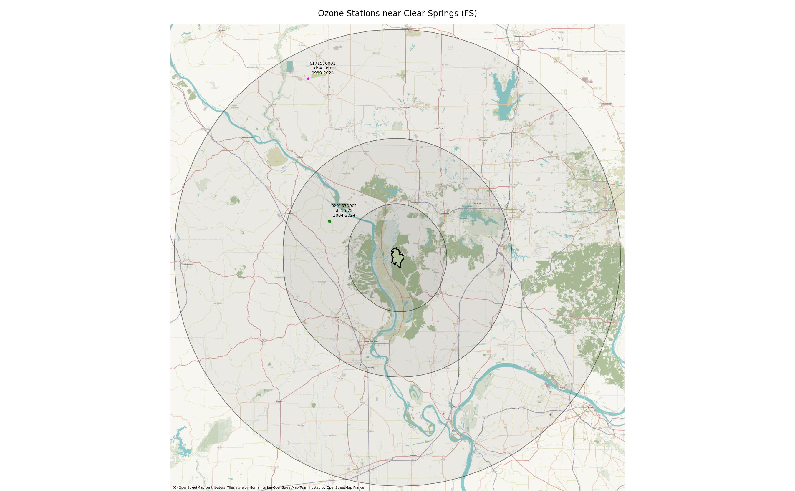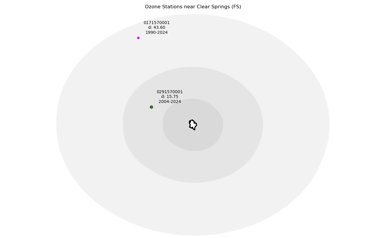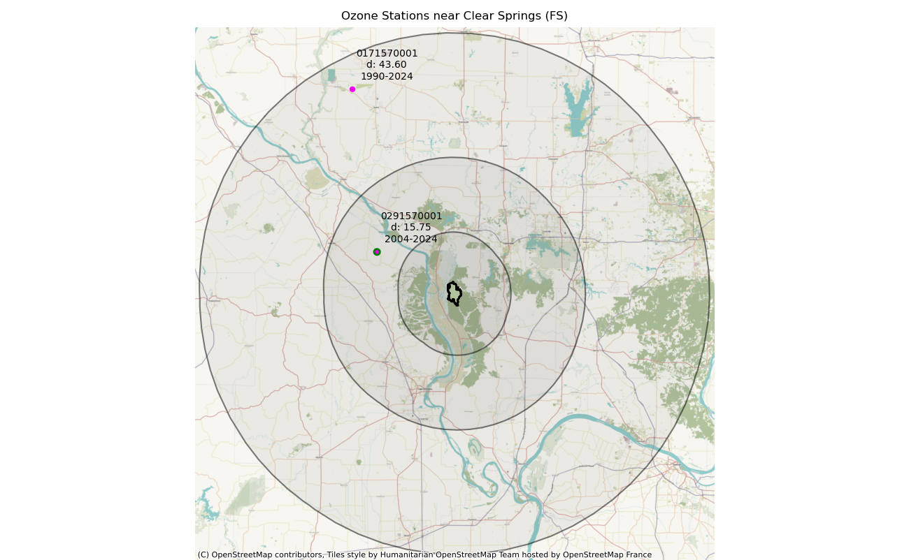 Monitoring data from sites located within 25 miles of a wilderness boundary are generally considered representative. Only ozone data from 1990 forward are considered valid for this measure, so the earliest 3-year moving average used for any wilderness should be 1992. Period of record otherwise begins at the year of wilderness designation. A wilderness designated in 2000, for example, would use data from 2000, and the first 3-year average would be from 2002. Not all ozone monitoring sites have legacy data dating from the year of designation, in which case the baseline trend uses the ozone data when monitoring began.