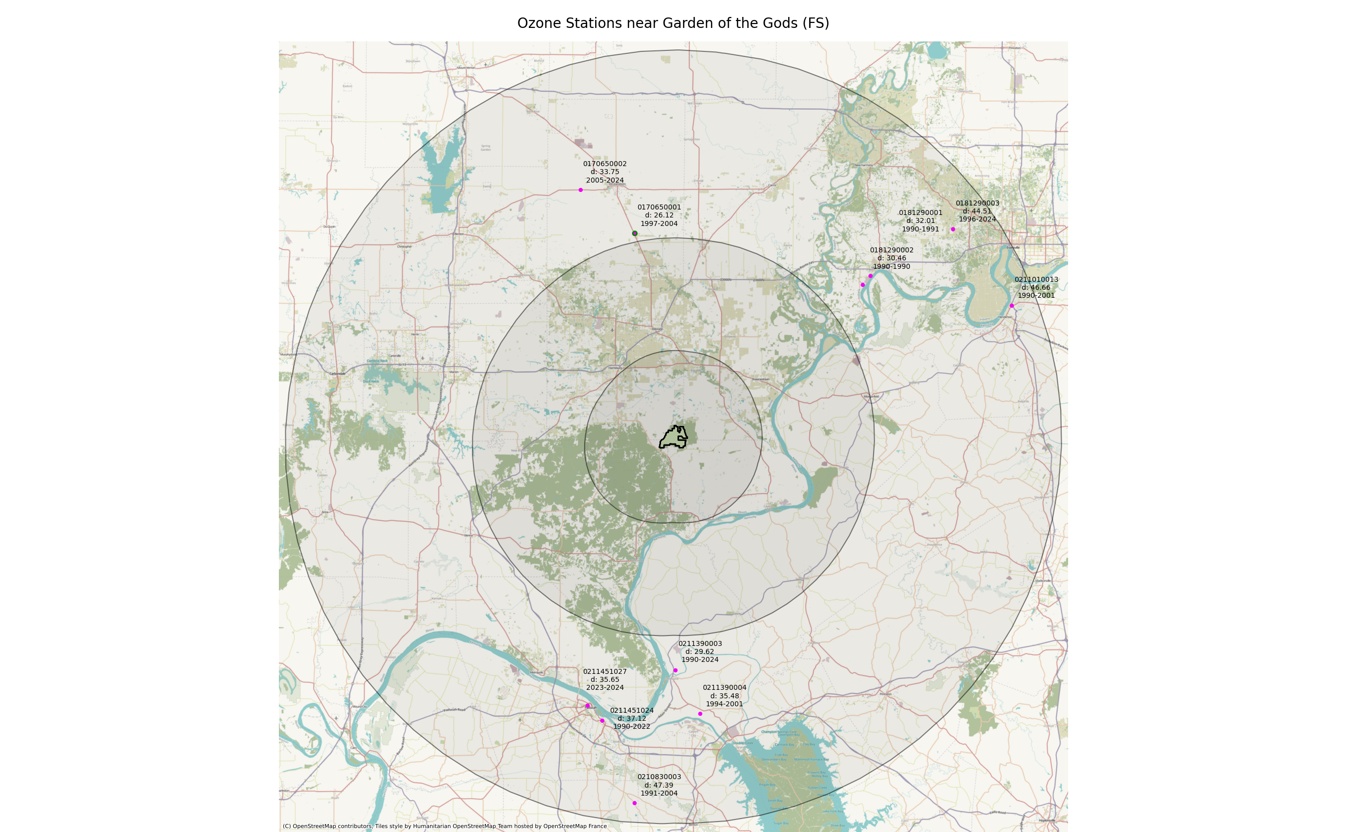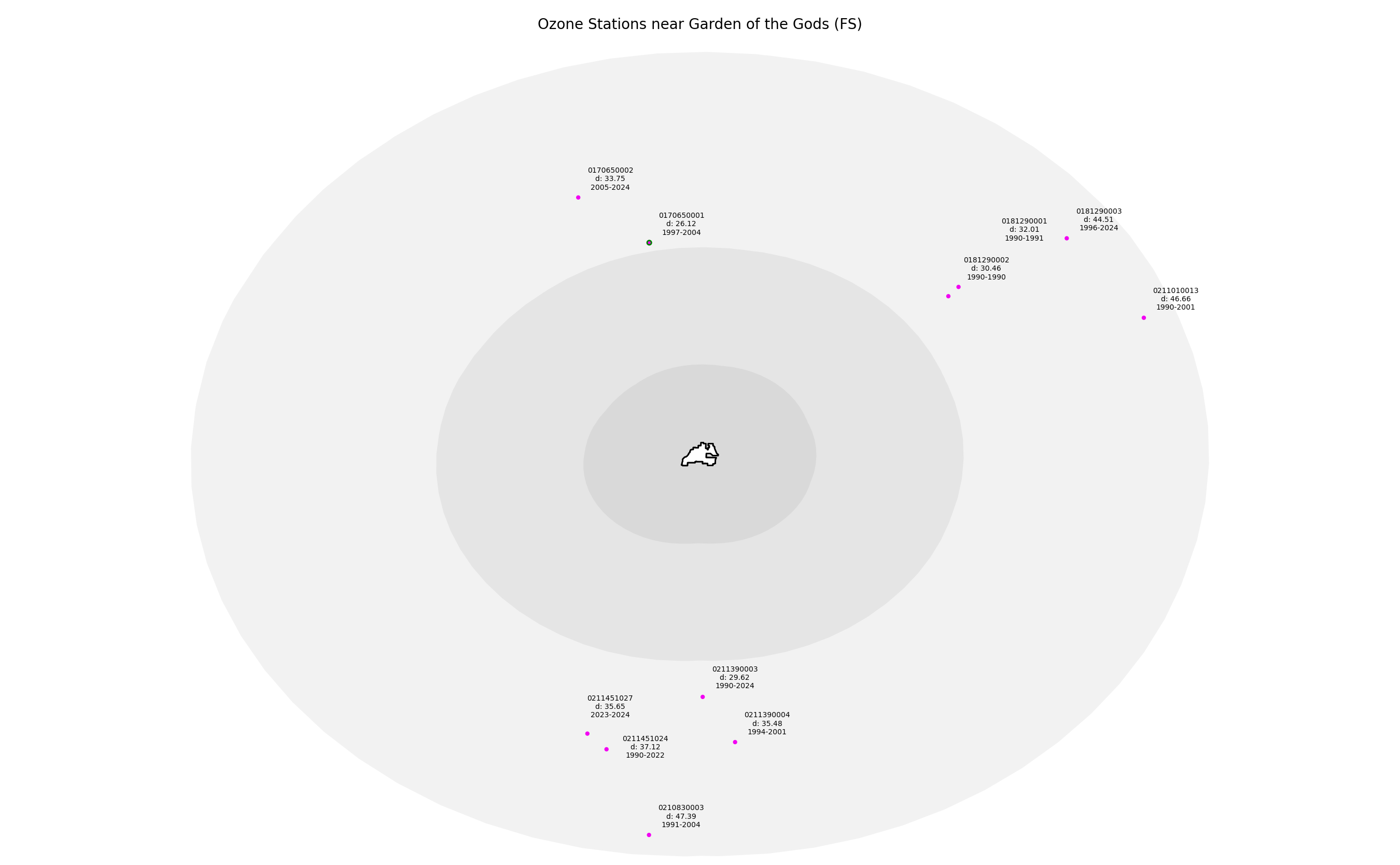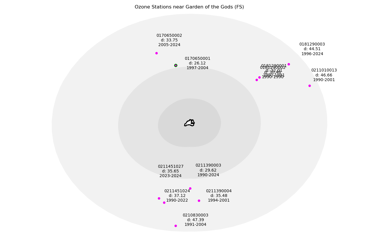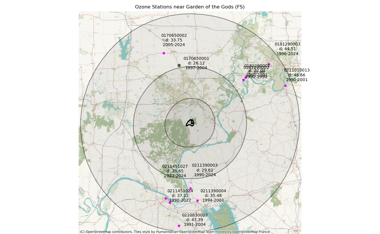 Monitoring data from sites located within 25 miles of a wilderness boundary are generally considered representative. Only ozone data from 1990 forward are considered valid for this measure, so the earliest 3-year moving average used for any wilderness should be 1992. Period of record otherwise begins at the year of wilderness designation. A wilderness designated in 2000, for example, would use data from 2000, and the first 3-year average would be from 2002. Not all ozone monitoring sites have legacy data dating from the year of designation, in which case the baseline trend uses the ozone data when monitoring began.
