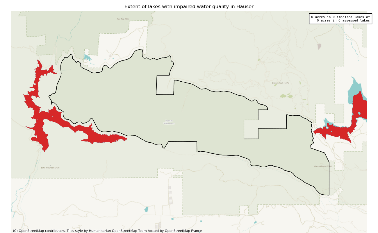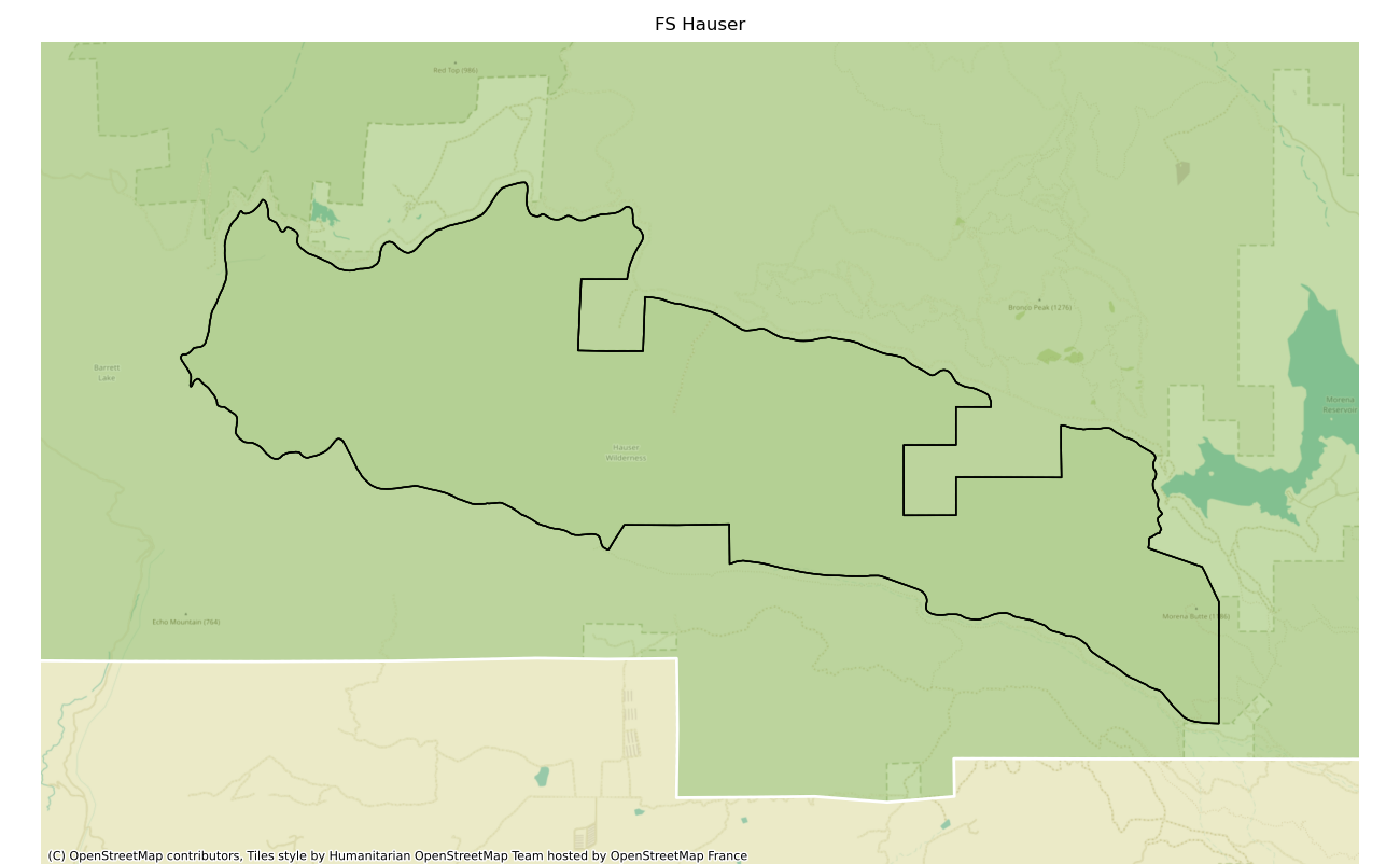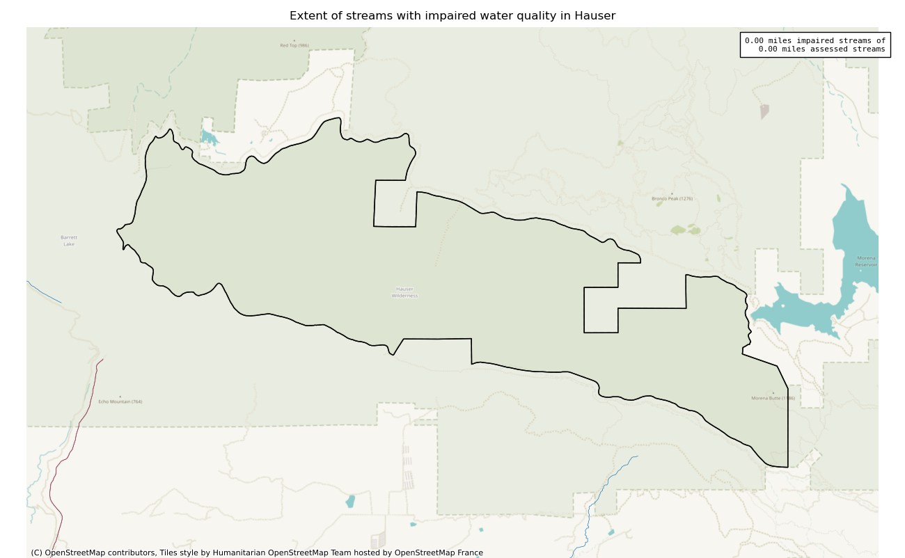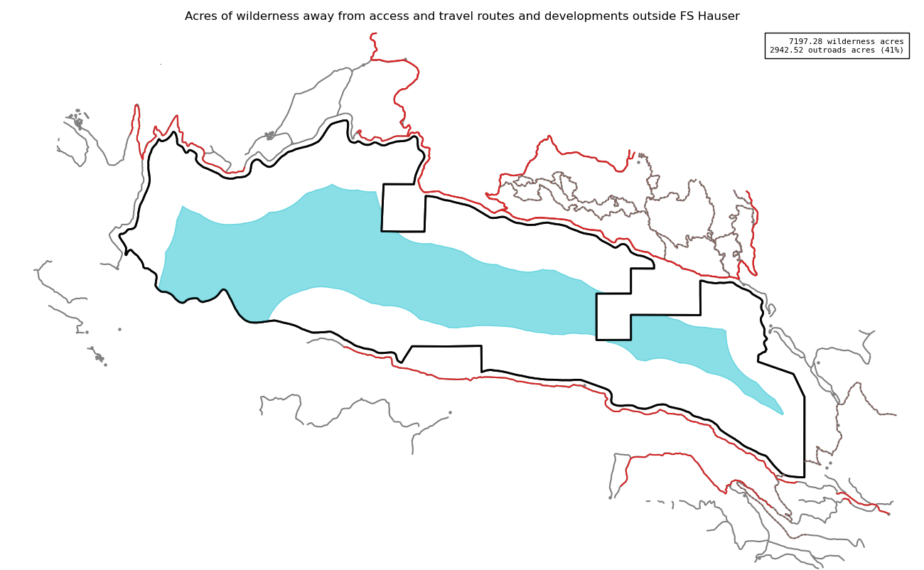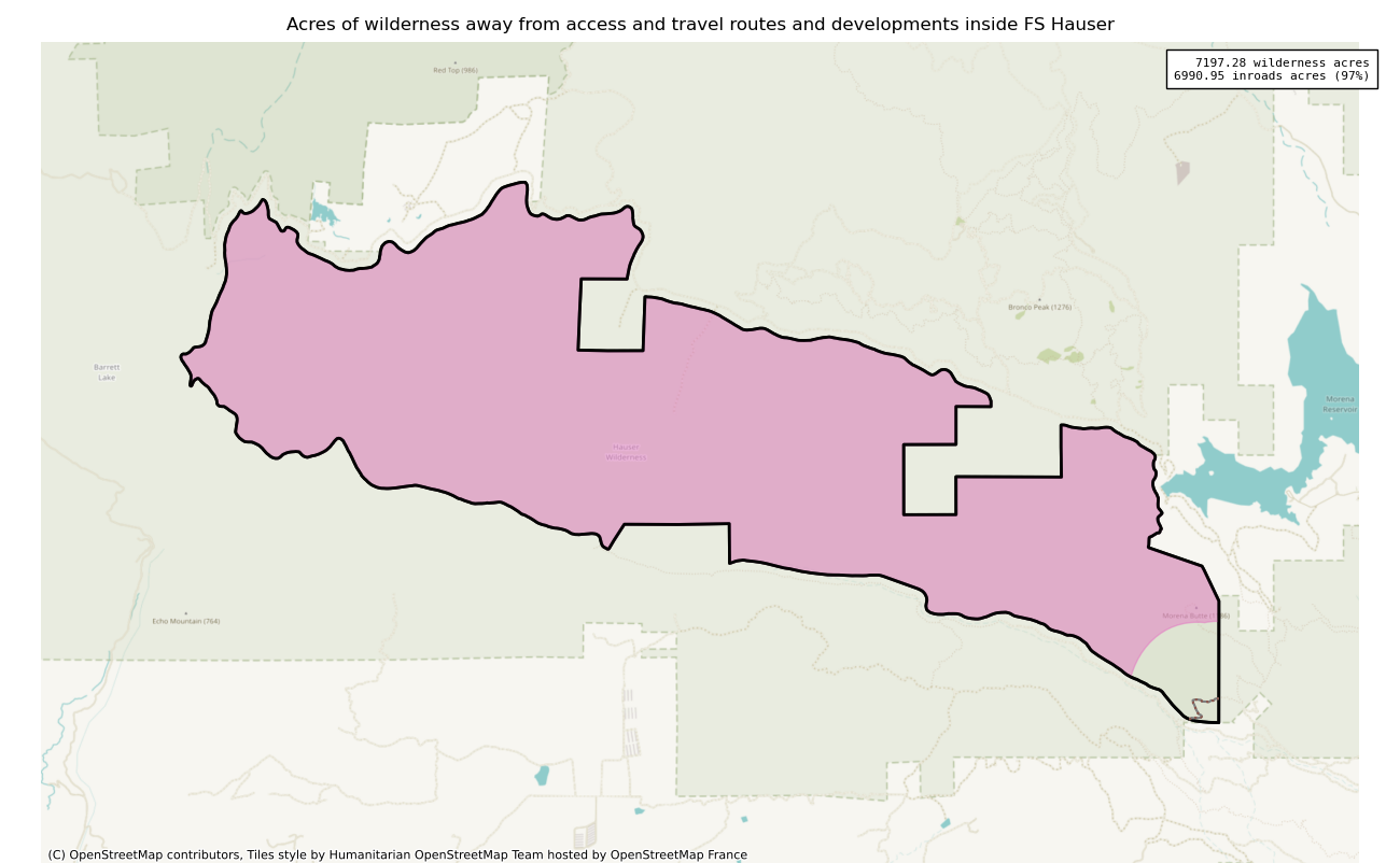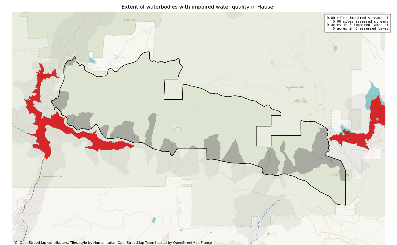 The 7197 acre Hauser was designated as a National Wilderness on or around 1984-01-01, and Wilderness Character Monitoring baseline work was done in 2025. The maps in this section are made with USFS data, with terrain maps from the internet.