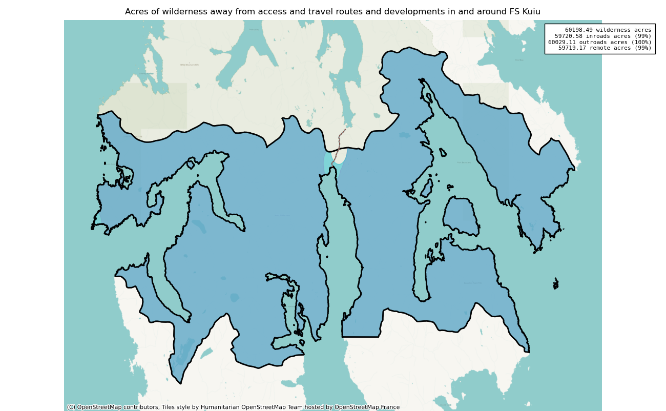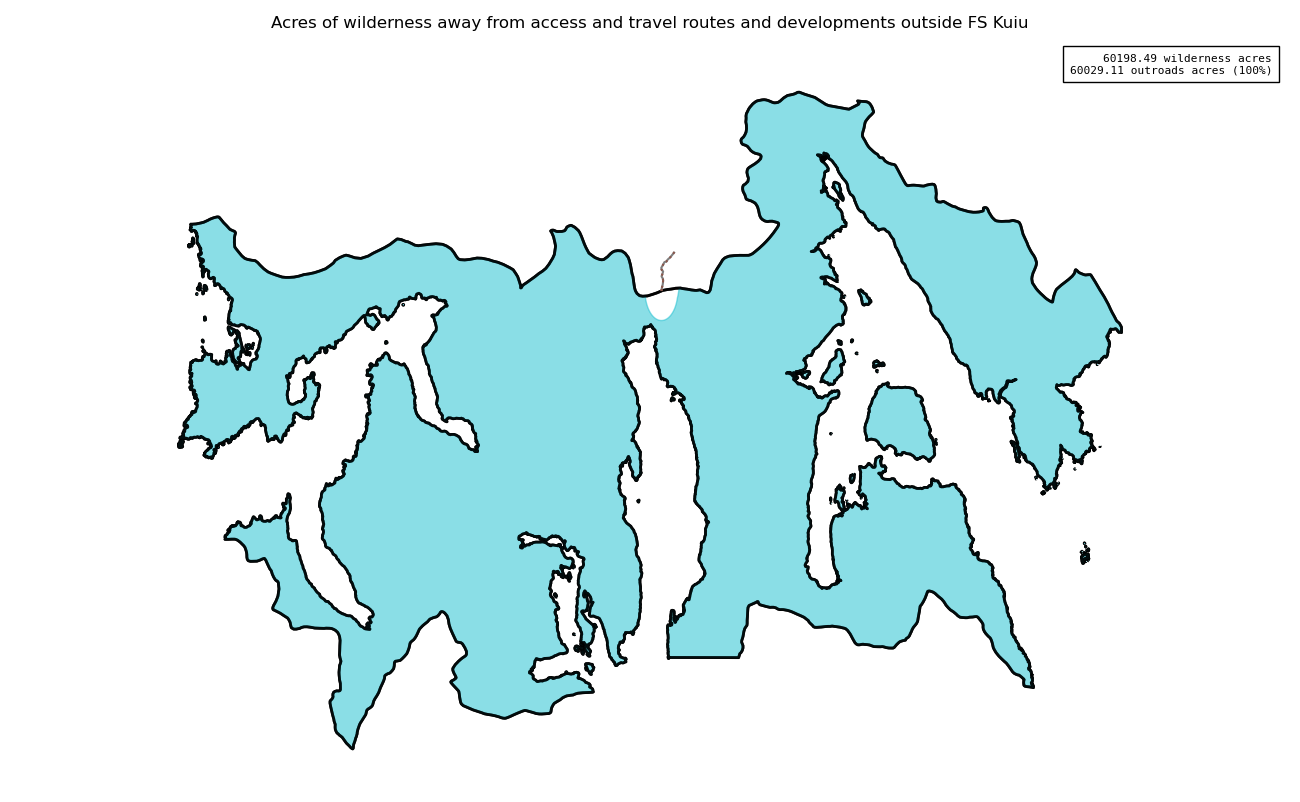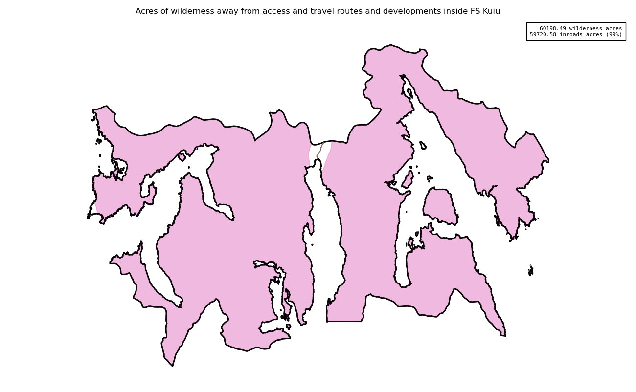 The 60198 acre Kuiu was designated as a National Wilderness on or around 1990-01-01, and Wilderness Character Monitoring baseline work was done in 2024. The maps in this section are made with USFS data, with terrain maps from the internet.