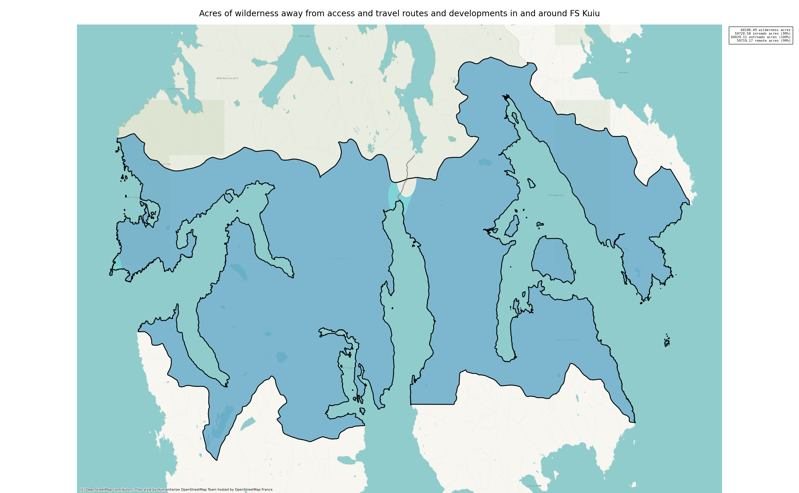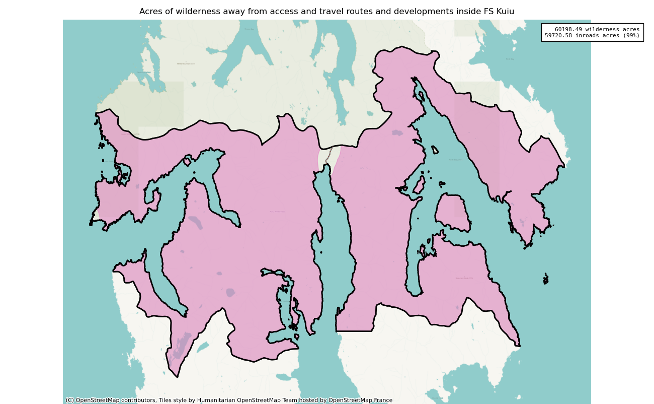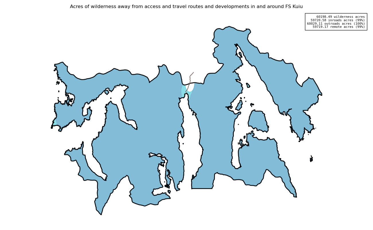 The 60198 acre Kuiu was designated as a National Wilderness on or around 1990-01-01, and Wilderness Character Monitoring baseline work was done in 2024. The maps in this section are made with USFS data, with terrain maps from the internet.