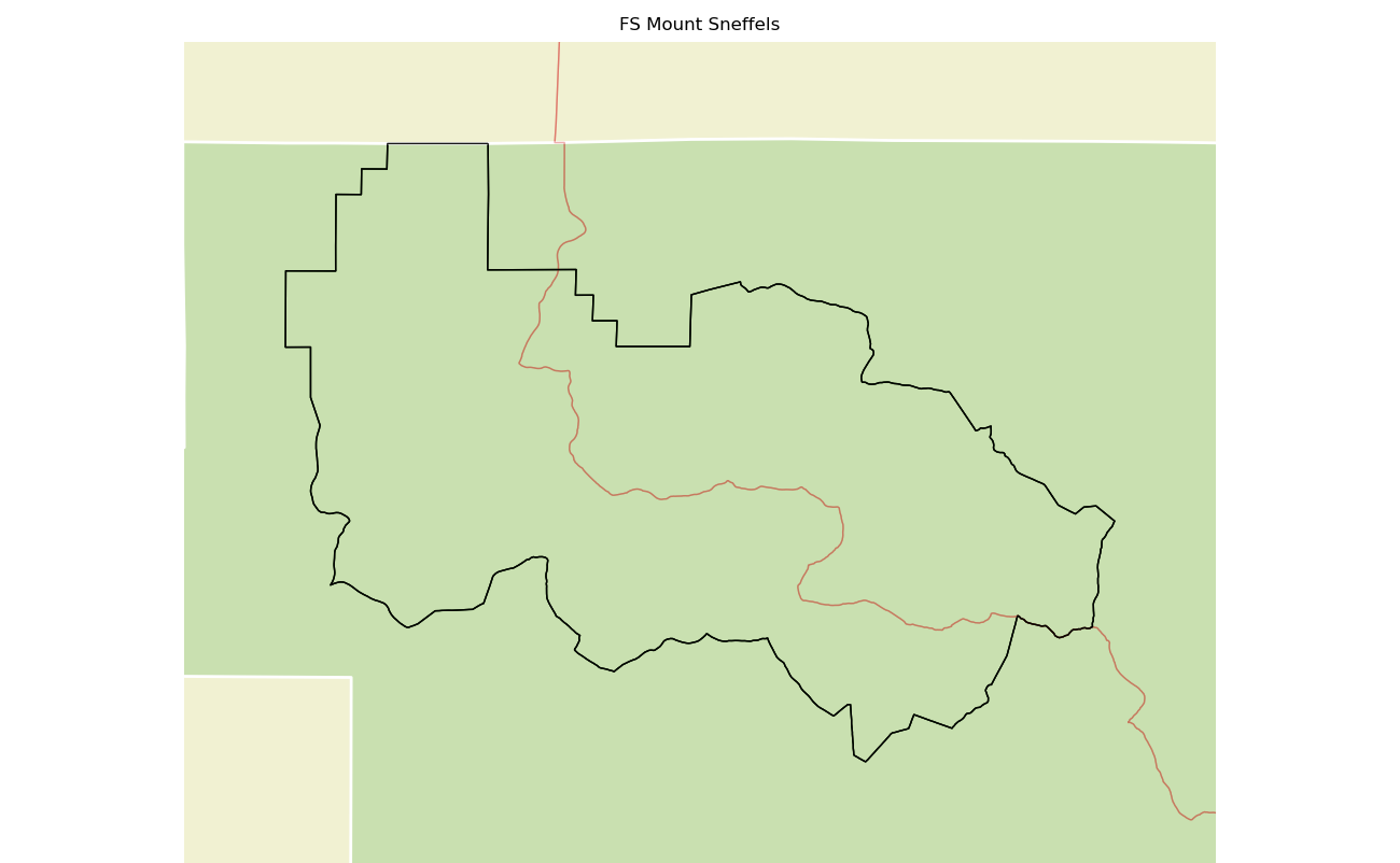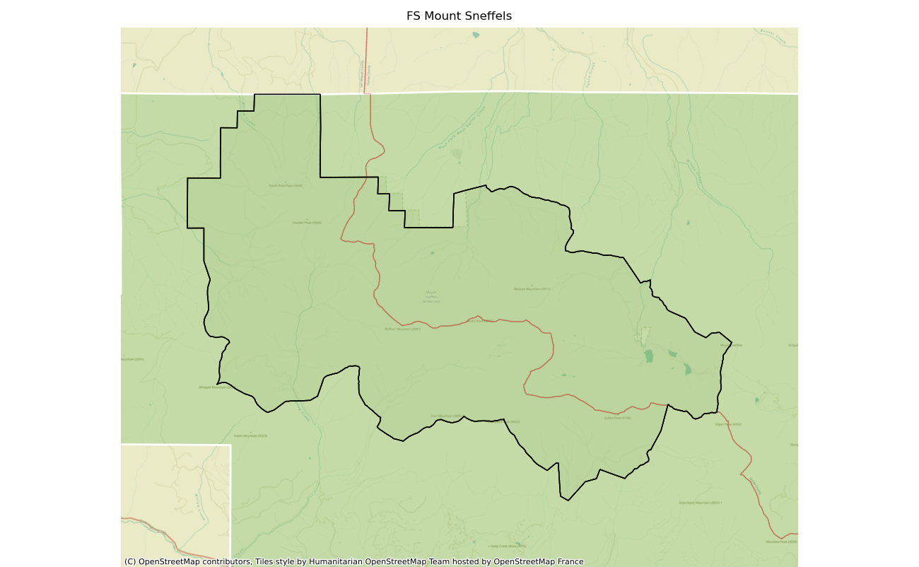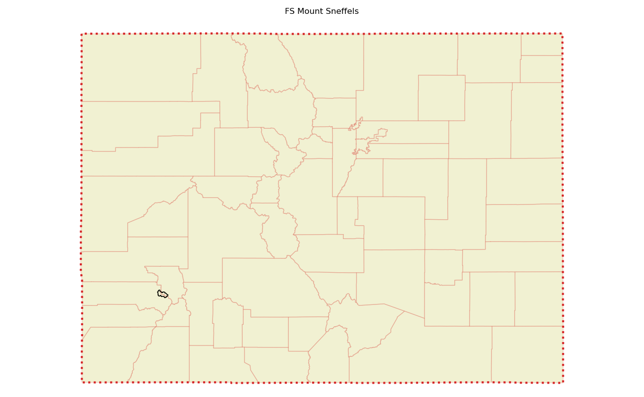The 16495 acre Mount Sneffels was designated as a National Wilderness on or around 1980-01-01, and Wilderness Character Monitoring baseline work was done in 2025. The maps in this section are made with USFS data, with terrain maps from the internet.