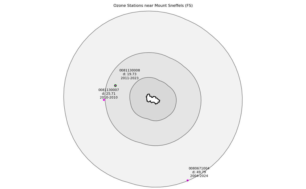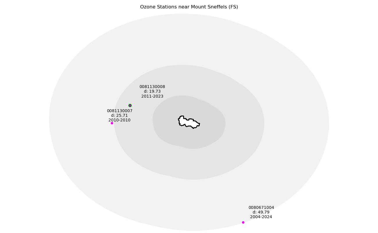 Monitoring data from sites located within 25 miles of a wilderness boundary are generally considered representative. Only ozone data from 1990 forward are considered valid for this measure, so the earliest 3-year moving average used for any wilderness should be 1992. Period of record otherwise begins at the year of wilderness designation. A wilderness designated in 2000, for example, would use data from 2000, and the first 3-year average would be from 2002. Not all ozone monitoring sites have legacy data dating from the year of designation, in which case the baseline trend uses the ozone data when monitoring began.
