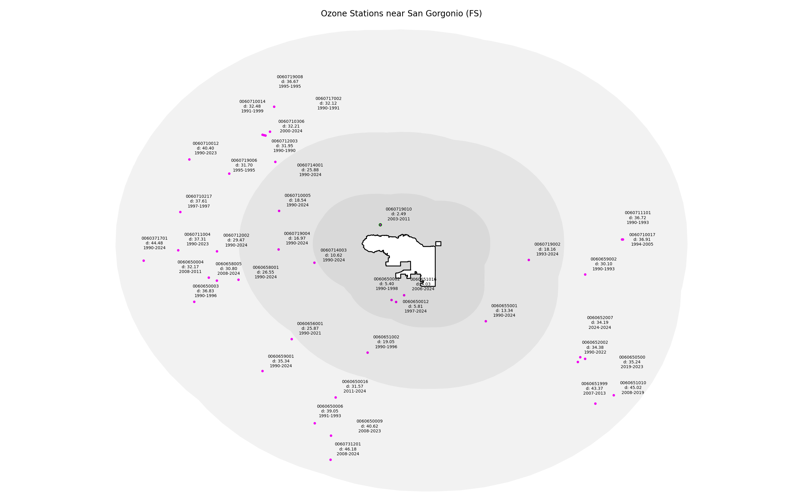 Monitoring data from sites located within 25 miles of a wilderness boundary are generally considered representative. Only ozone data from 1990 forward are considered valid for this measure, so the earliest 3-year moving average used for any wilderness should be 1992. Period of record otherwise begins at the year of wilderness designation. A wilderness designated in 2000, for example, would use data from 2000, and the first 3-year average would be from 2002. Not all ozone monitoring sites have legacy data dating from the year of designation, in which case the baseline trend uses the ozone data when monitoring began.