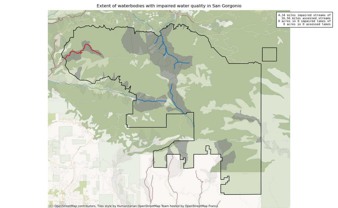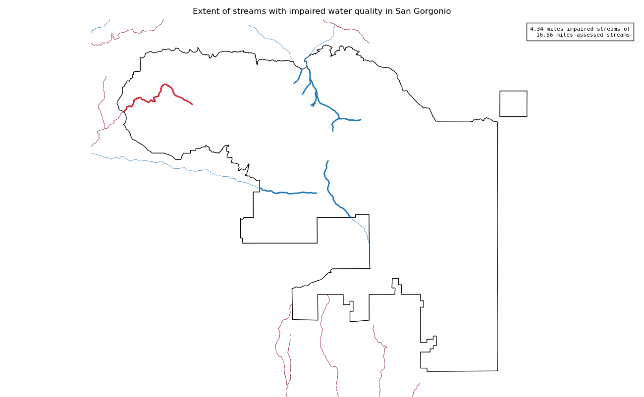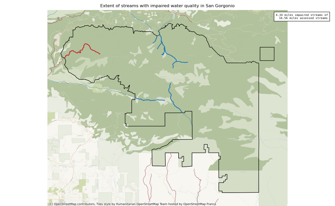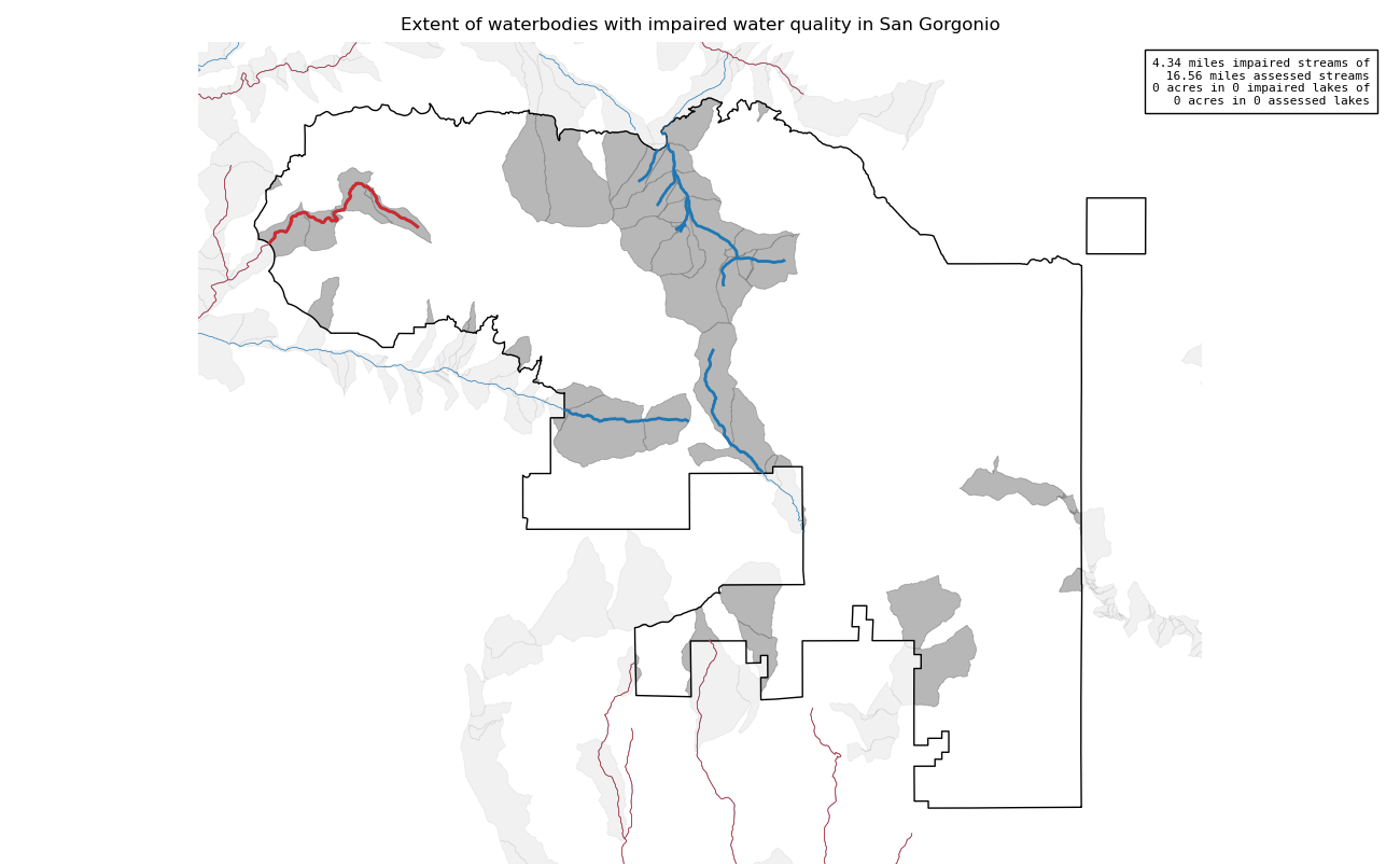 This measure assesses the miles of streams or number of lakes inside wilderness with impaired water quality, based on national or state 303(d) list of impaired water bodies or local monitoring data. Water quality directly influences the health of plant and animal communities. While many headwater wilderness watersheds have good water quality, degradation from historical activities such as mining or from upstream developments outside a wilderness may impact water quality in wilderness.