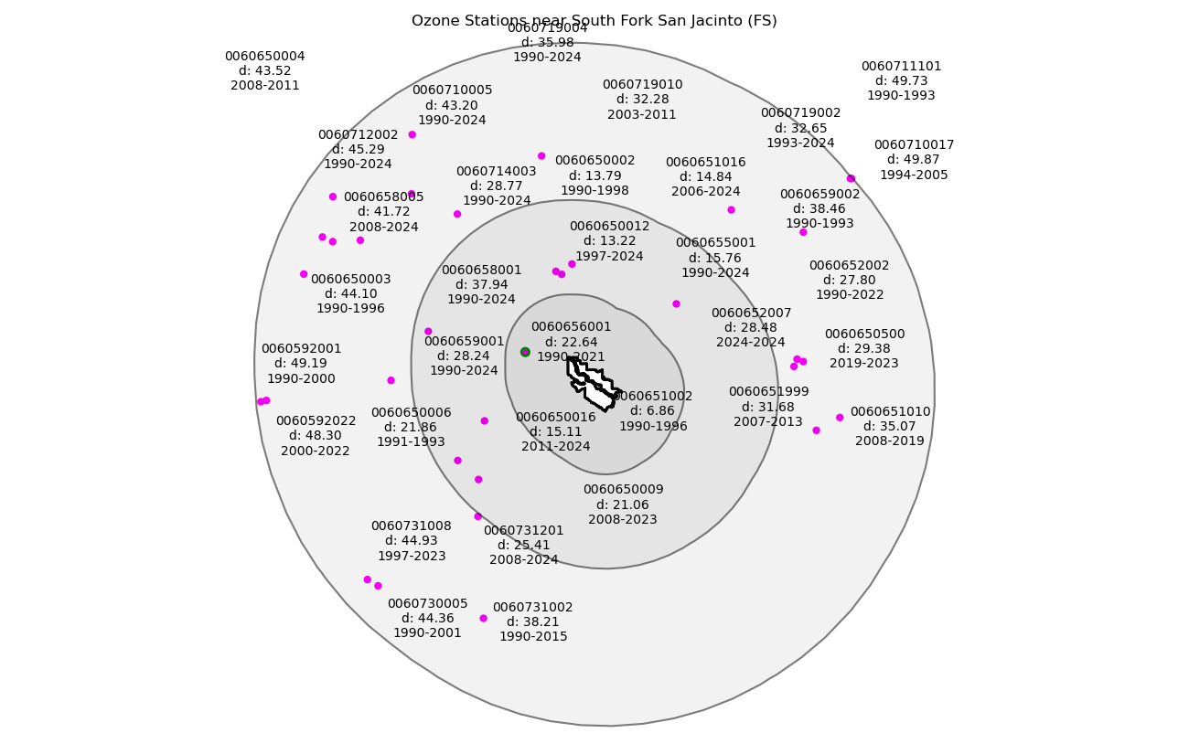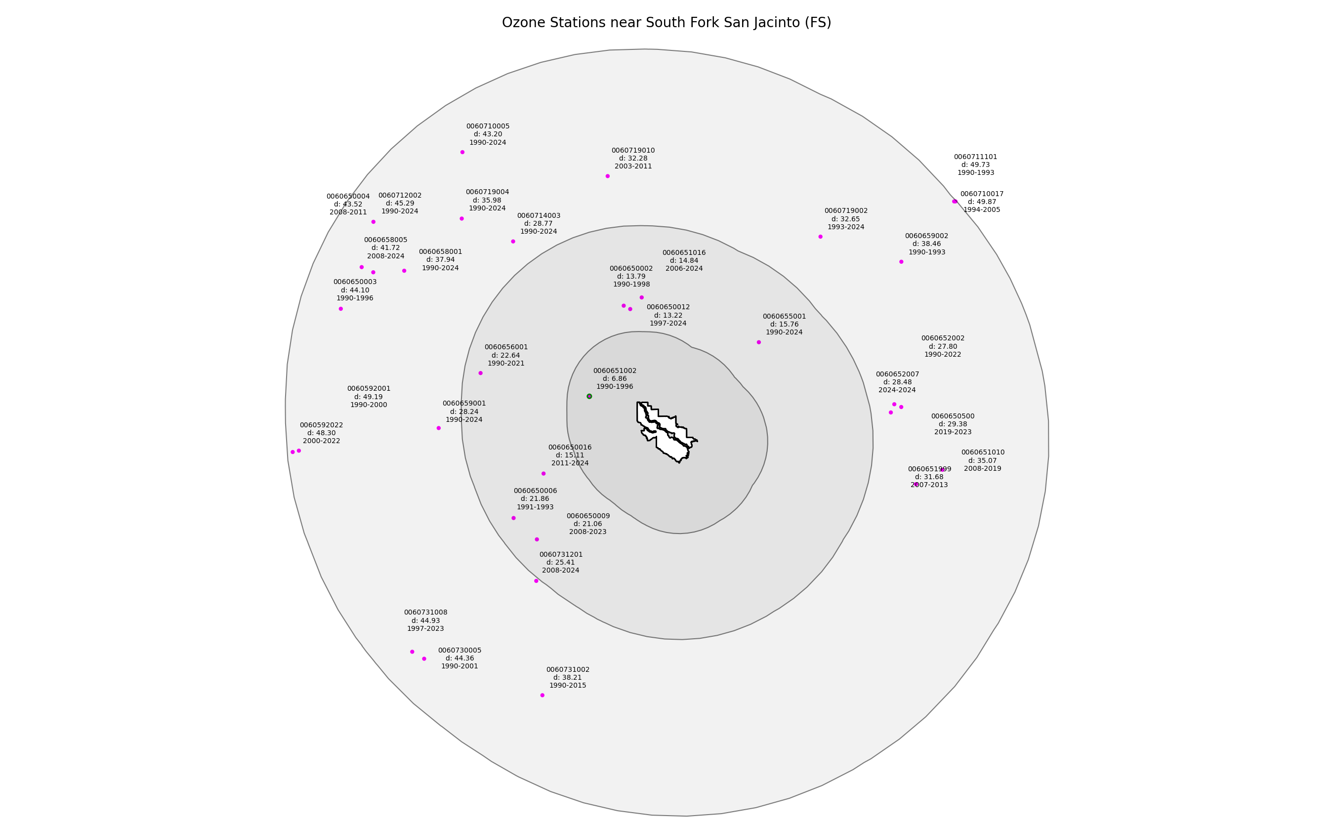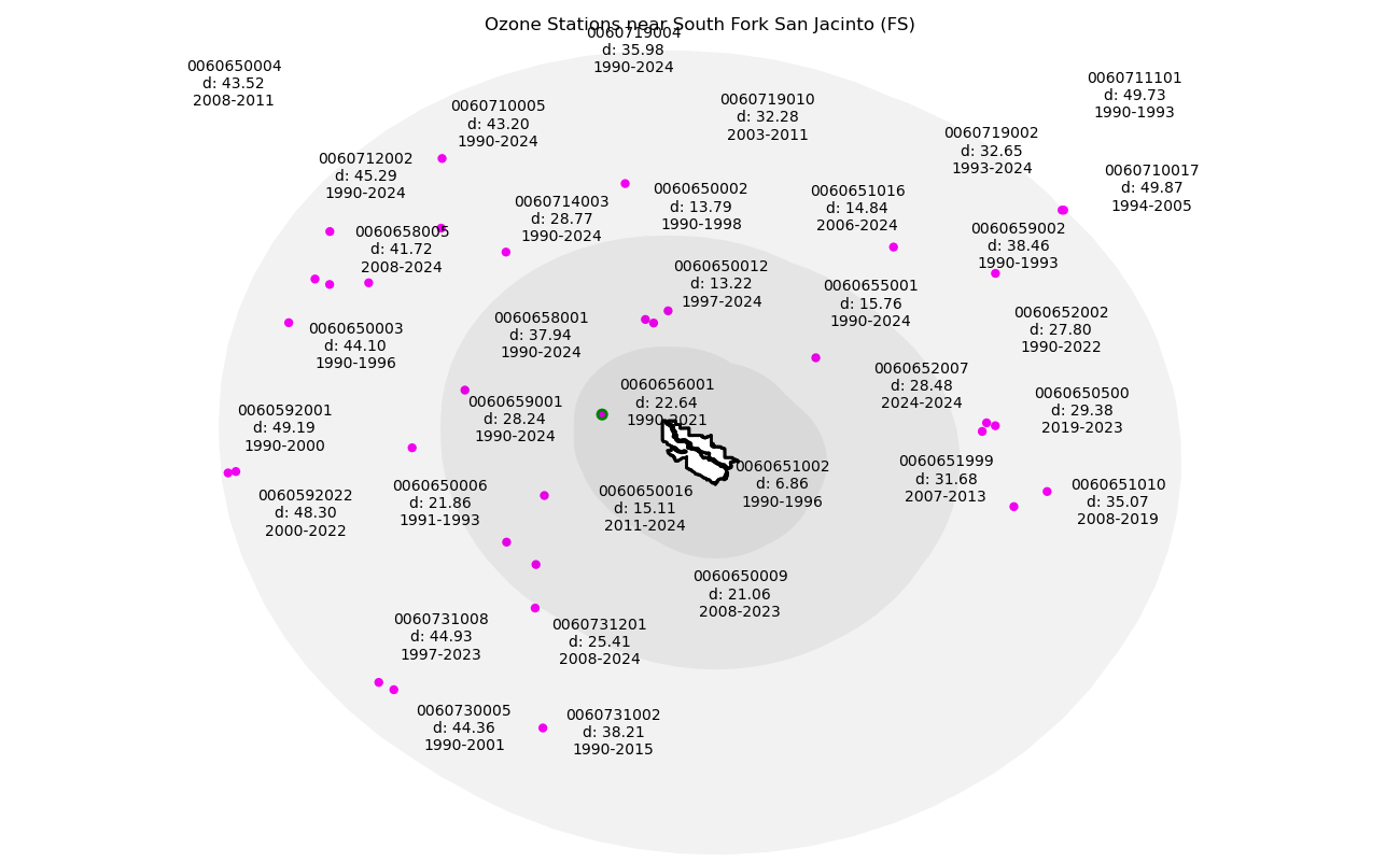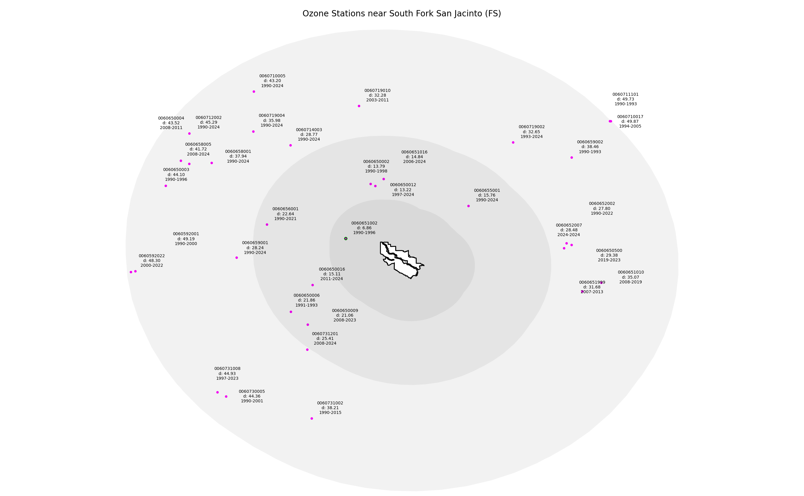 Monitoring data from sites located within 25 miles of a wilderness boundary are generally considered representative. Only ozone data from 1990 forward are considered valid for this measure, so the earliest 3-year moving average used for any wilderness should be 1992. Period of record otherwise begins at the year of wilderness designation. A wilderness designated in 2000, for example, would use data from 2000, and the first 3-year average would be from 2002. Not all ozone monitoring sites have legacy data dating from the year of designation, in which case the baseline trend uses the ozone data when monitoring began.