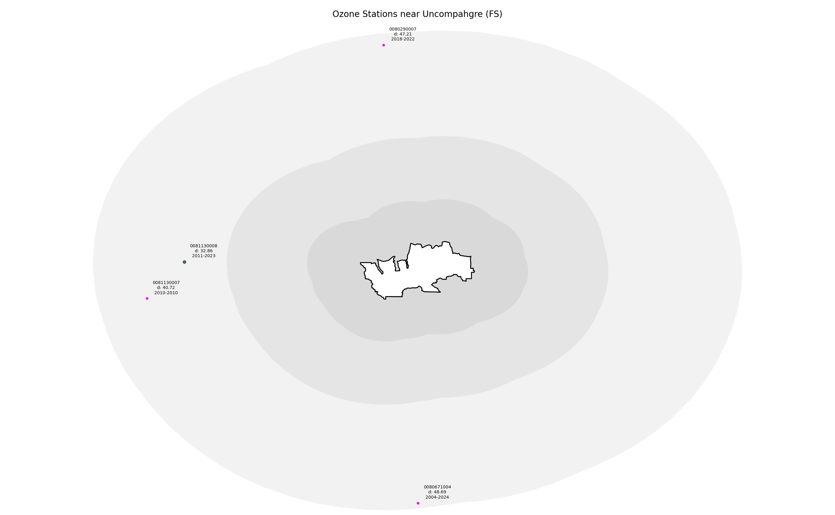 Monitoring data from sites located within 25 miles of a wilderness boundary are generally considered representative. Only ozone data from 1990 forward are considered valid for this measure, so the earliest 3-year moving average used for any wilderness should be 1992. Period of record otherwise begins at the year of wilderness designation. A wilderness designated in 2000, for example, would use data from 2000, and the first 3-year average would be from 2002. Not all ozone monitoring sites have legacy data dating from the year of designation, in which case the baseline trend uses the ozone data when monitoring began.