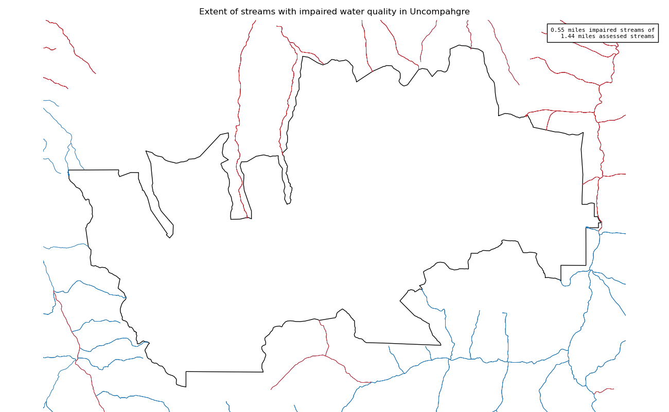 This measure assesses the miles of streams or number of lakes inside wilderness with impaired water quality, based on national or state 303(d) list of impaired water bodies or local monitoring data. Water quality directly influences the health of plant and animal communities. While many headwater wilderness watersheds have good water quality, degradation from historical activities such as mining or from upstream developments outside a wilderness may impact water quality in wilderness.