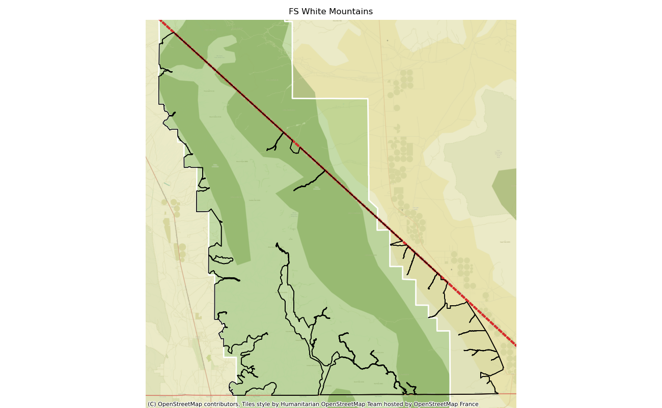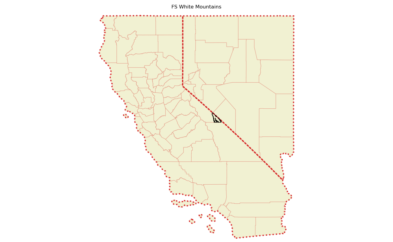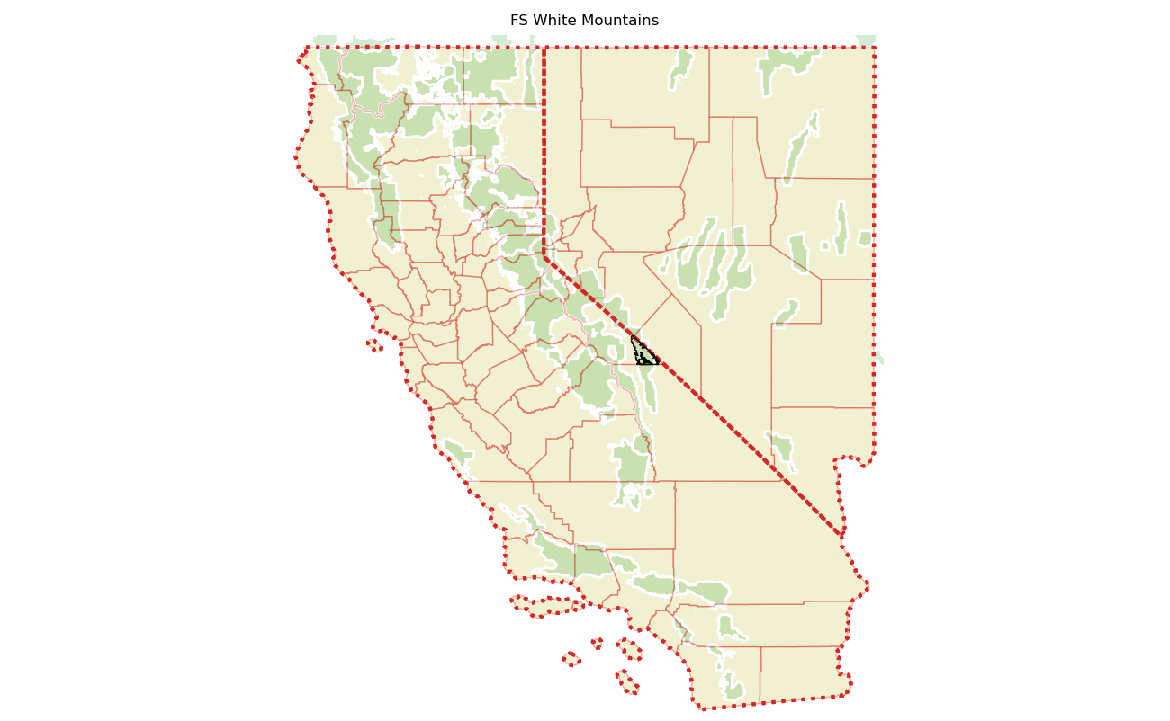 The 230672 acre White Mountains was designated as a National Wilderness on or around 2009-01-01, and Wilderness Character Monitoring baseline work was done in 2025. The maps in this section are made with USFS data, with terrain maps from the internet.