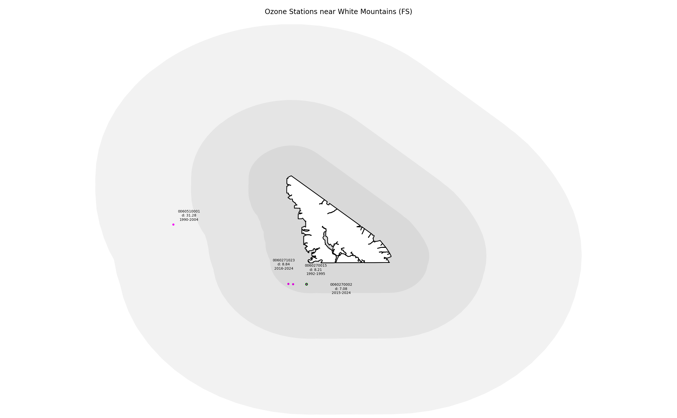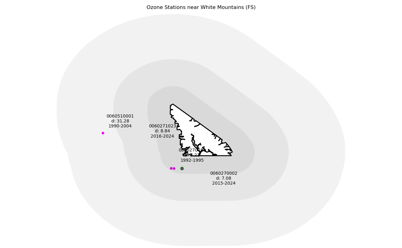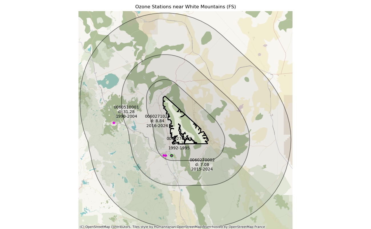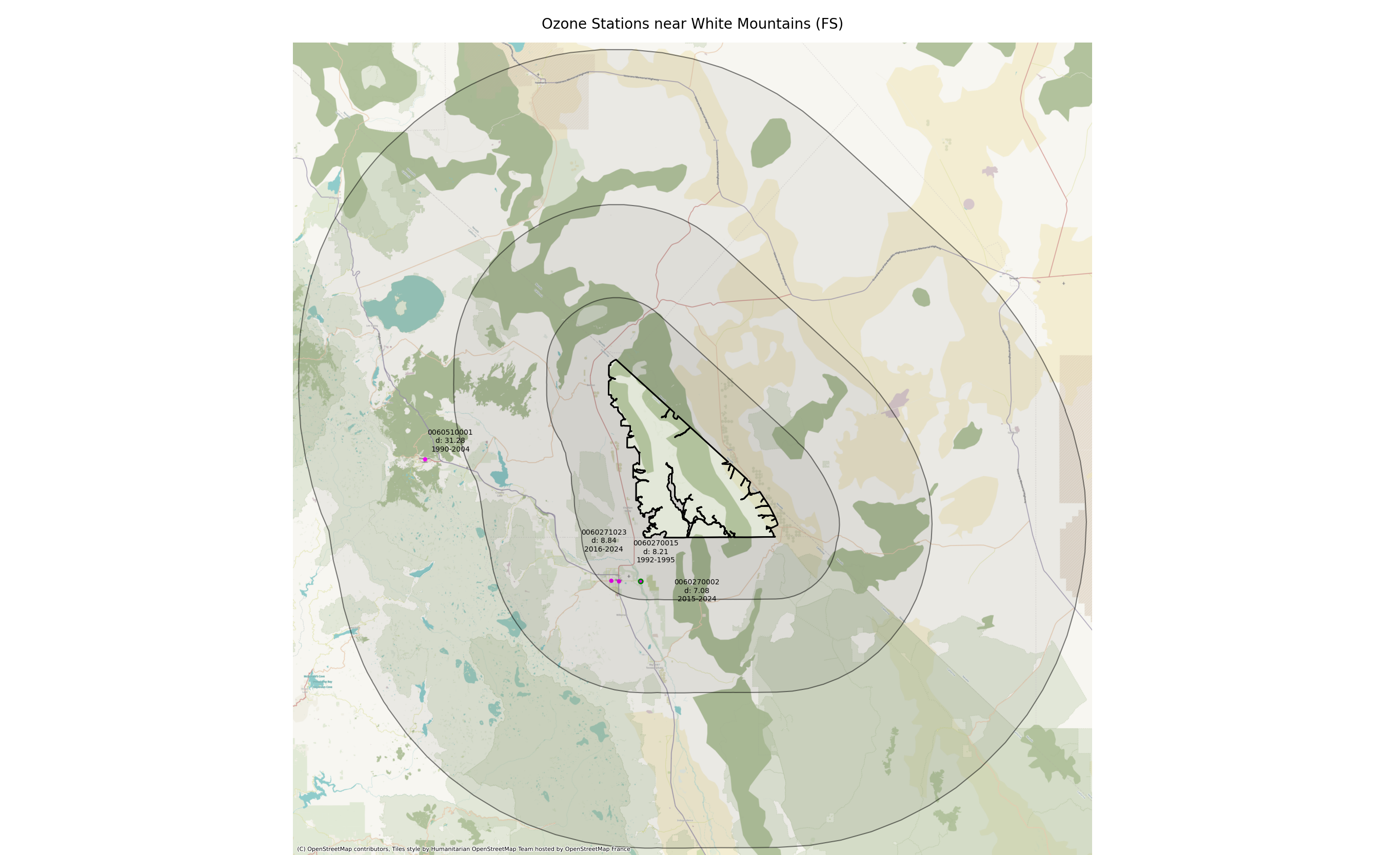 Monitoring data from sites located within 25 miles of a wilderness boundary are generally considered representative. Only ozone data from 1990 forward are considered valid for this measure, so the earliest 3-year moving average used for any wilderness should be 1992. Period of record otherwise begins at the year of wilderness designation. A wilderness designated in 2000, for example, would use data from 2000, and the first 3-year average would be from 2002. Not all ozone monitoring sites have legacy data dating from the year of designation, in which case the baseline trend uses the ozone data when monitoring began.