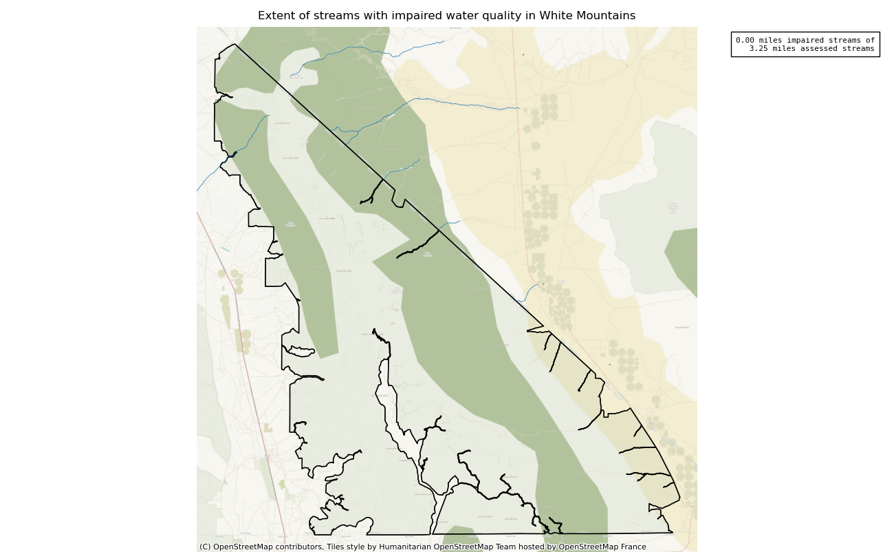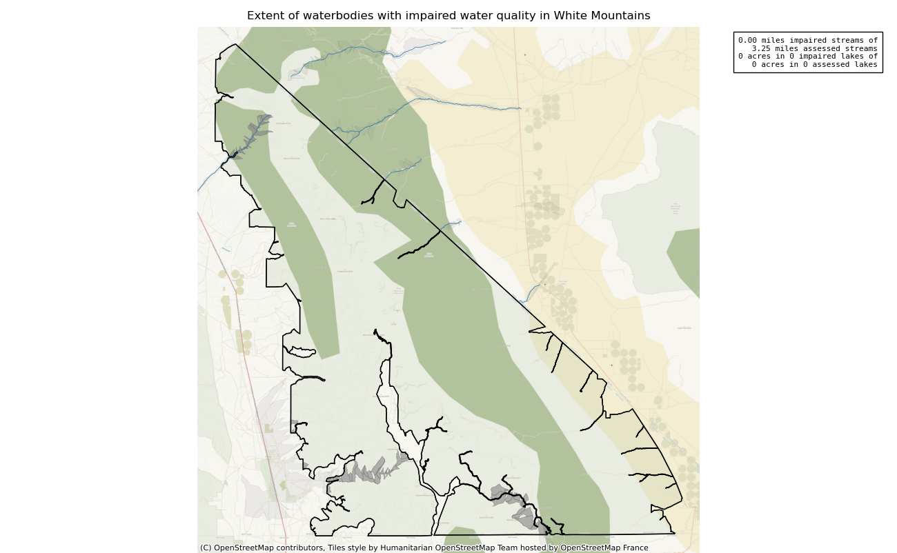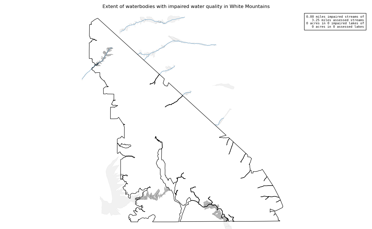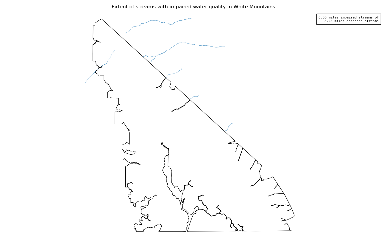 This measure assesses the miles of streams or number of lakes inside wilderness with impaired water quality, based on national or state 303(d) list of impaired water bodies or local monitoring data. Water quality directly influences the health of plant and animal communities. While many headwater wilderness watersheds have good water quality, degradation from historical activities such as mining or from upstream developments outside a wilderness may impact water quality in wilderness.